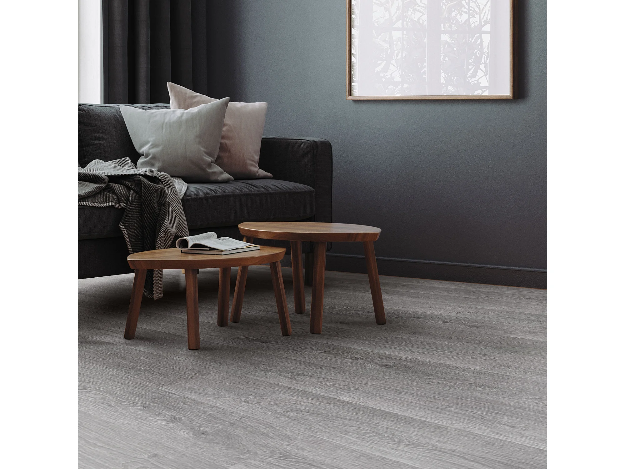 Revêtement de sol clipsable en vinyle 122cmx18cmx4,2mm 4,62m²/21 planches gris chêne windswell hickory imitation parquet pvc étanche classe charge 34
