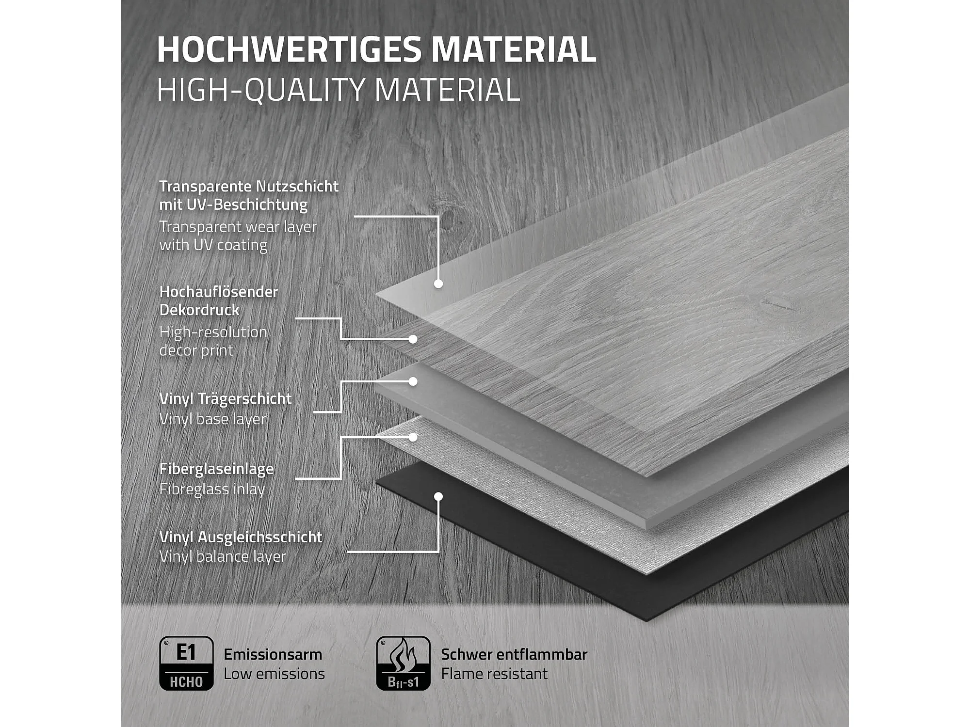 Revêtement de sol autocollant en PVC vinyle 4,46m²/32 planches 91,5 cm x 15,3 cm gris aspect de pin antidérapant résistant à l'eau l'abrasion