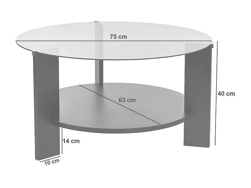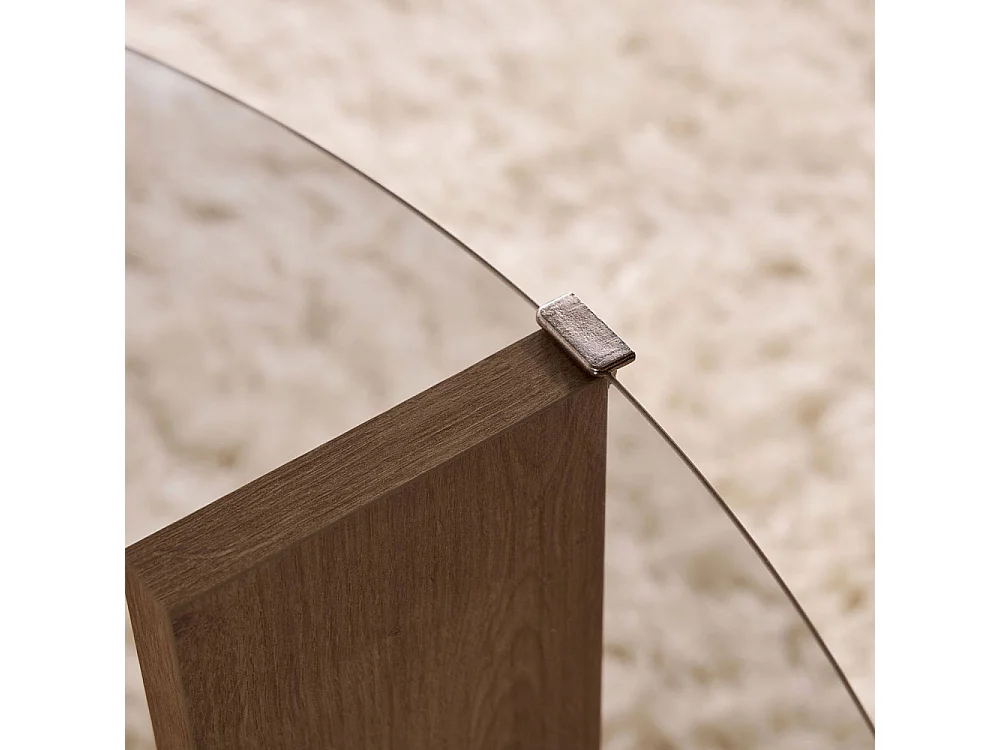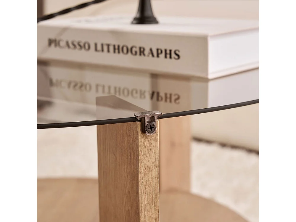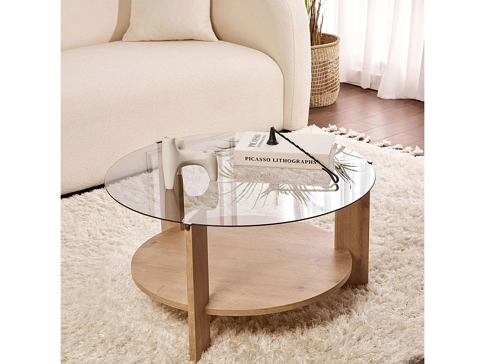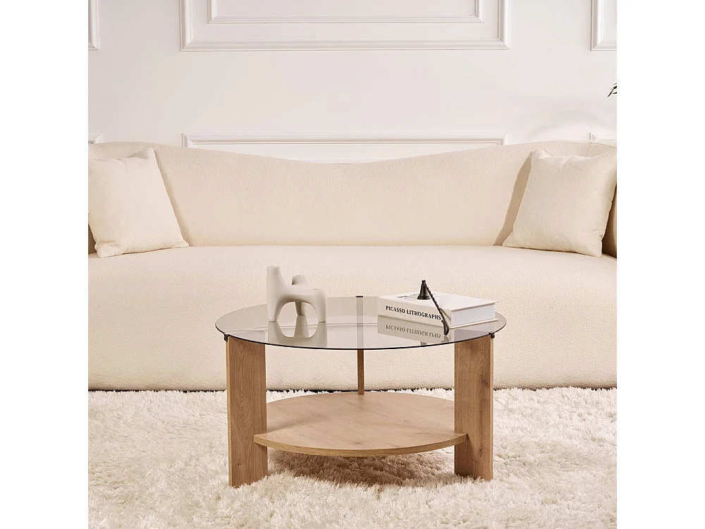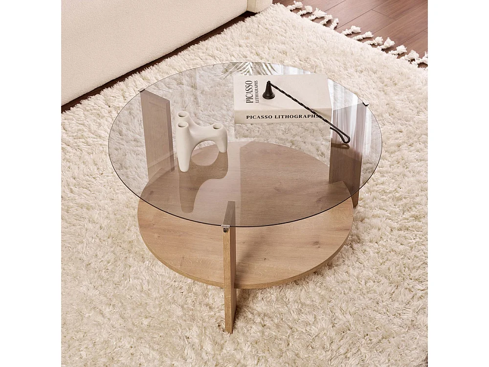 Ria - Table basse ronde en verre fumé et bois ø75cm - Bois clair