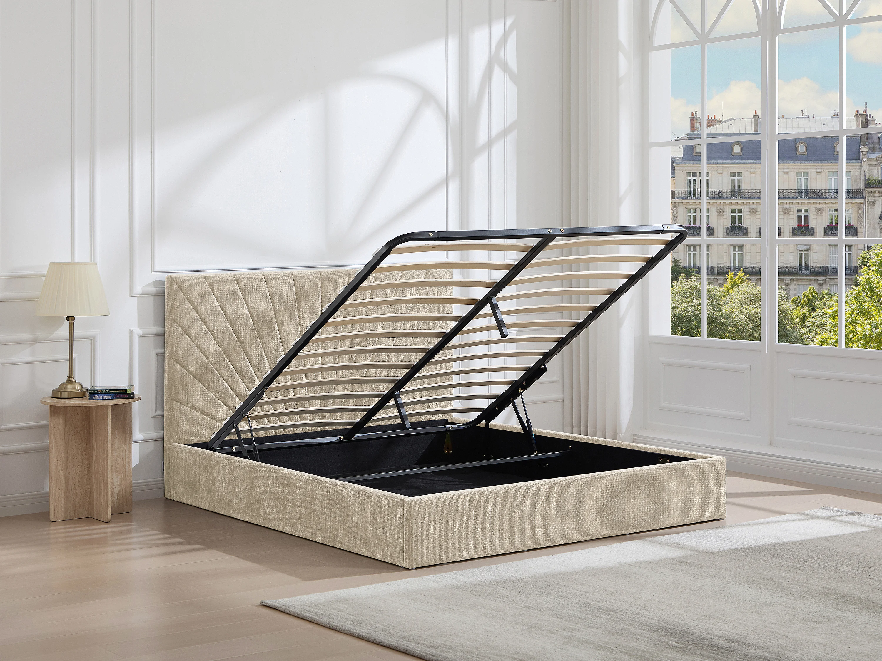 Lit coffre 140 x 190 cm - Tissu texturé - Beige + Matelas - RIBIOLA