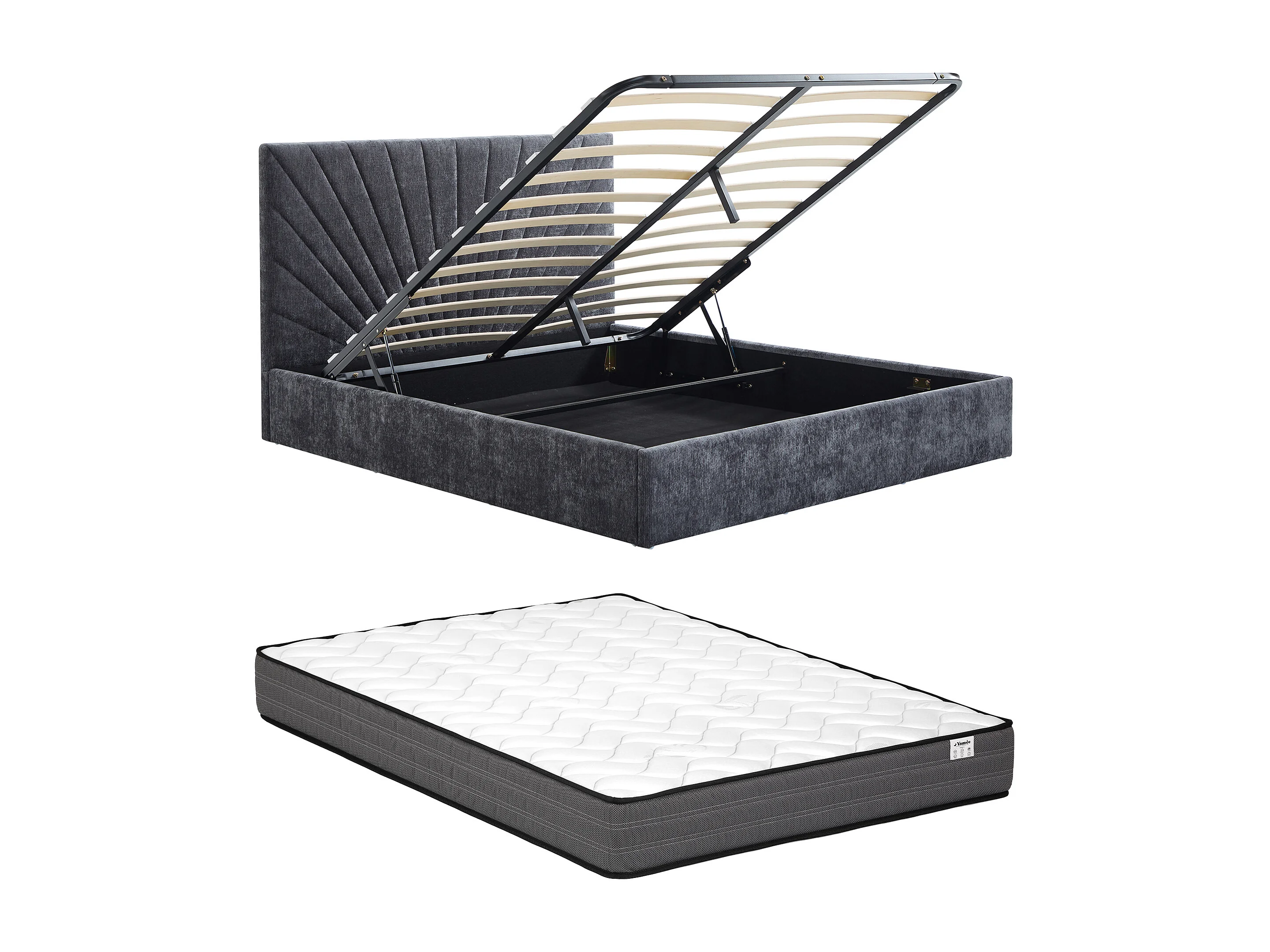 Lit coffre 160 x 200 cm - Tissu texturé – Gris anthracite + Matelas - RIBIOLA