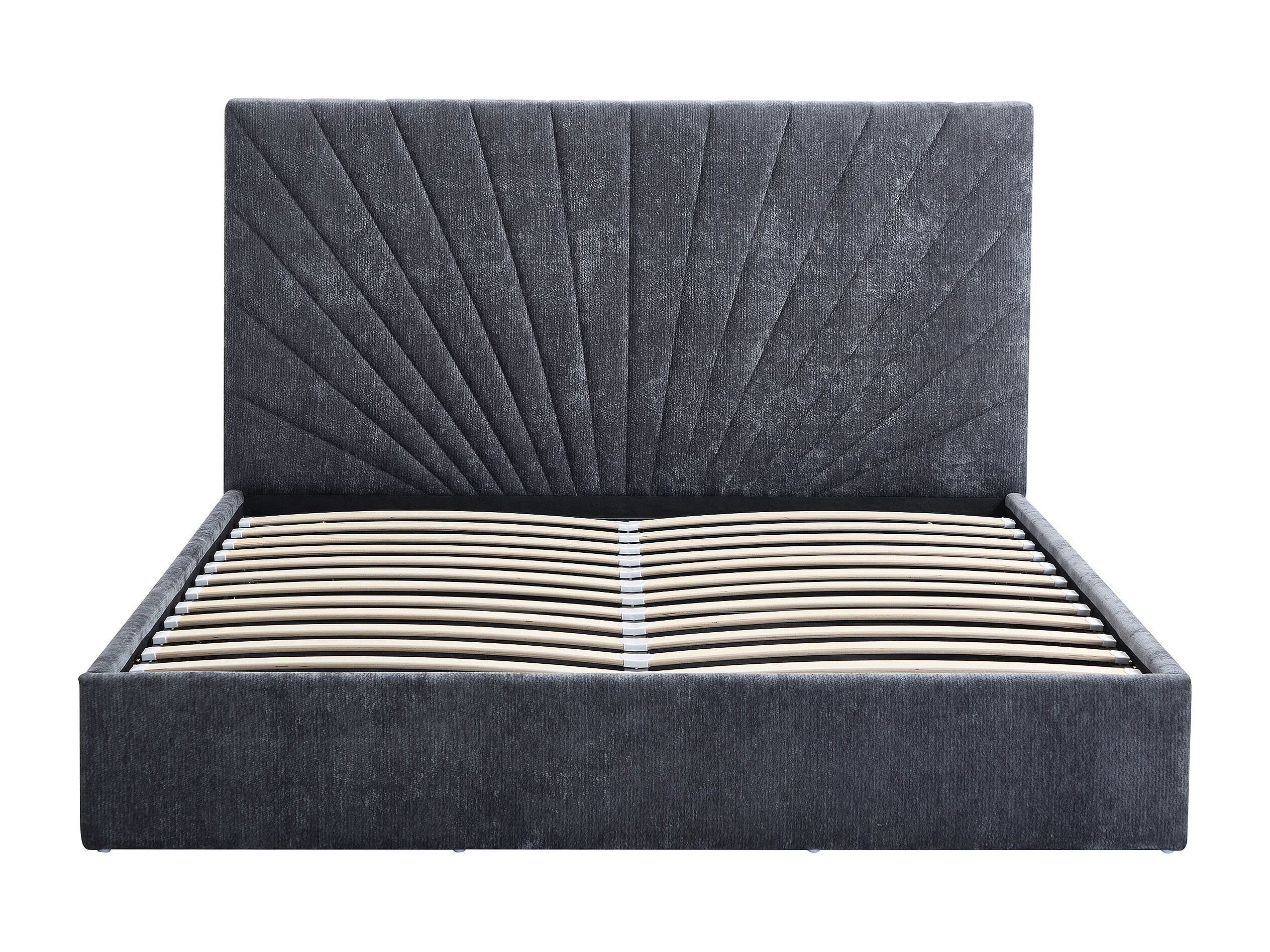 Lit coffre 180 x 200 cm - Tissu texturé – Gris anthracite + Matelas - RIBIOLA
