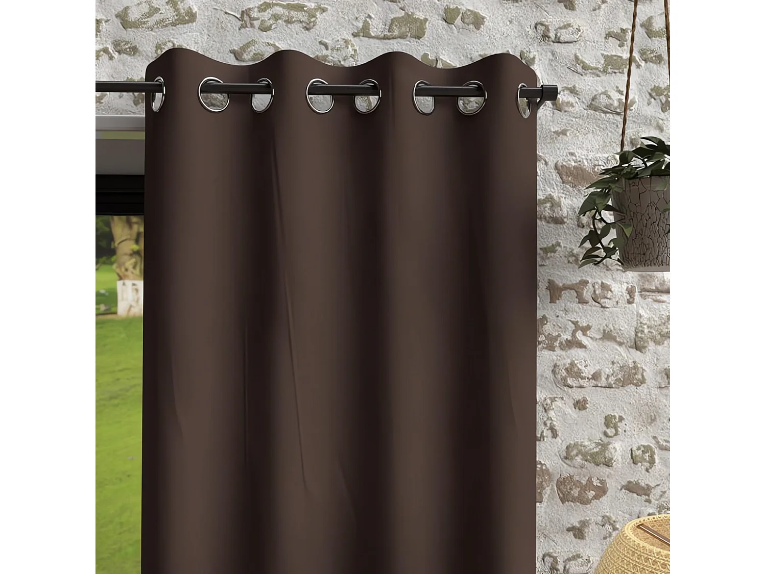 Rideau à oeillets en microfibre lavée 135x180 cm BOHEME brun, par Soleil d'Ocre