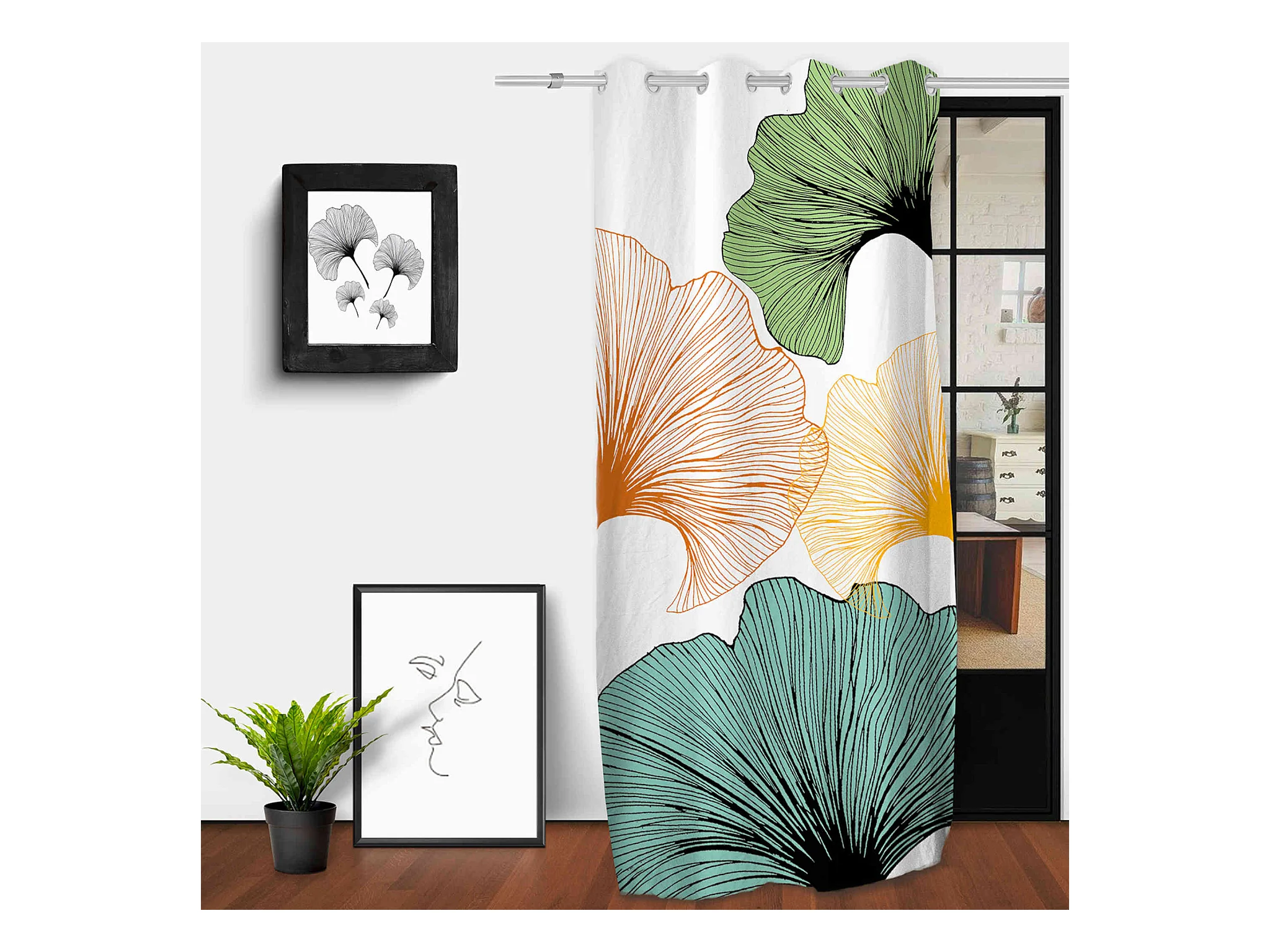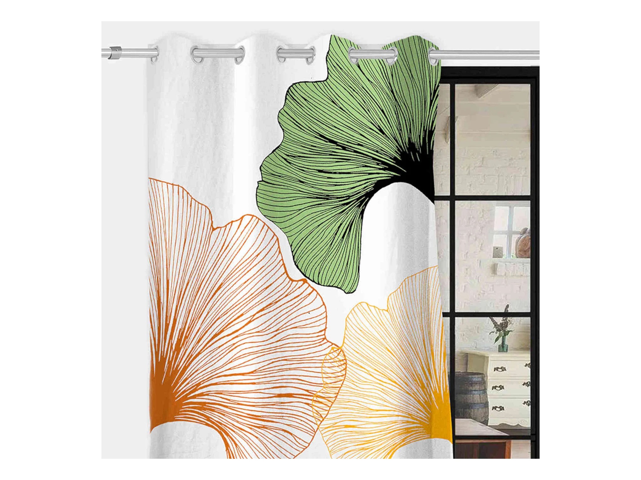 Rideau à œillets Ginkgo imprimé placé 132x250 cm