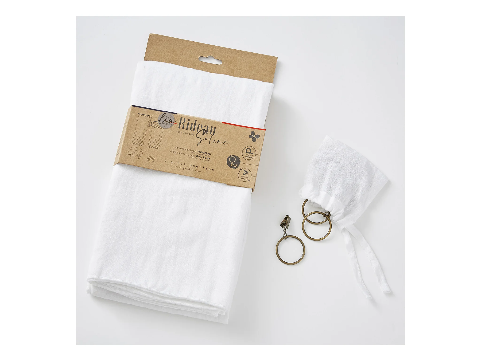 Rideau à pinces ajustable lin 140x270 cm blanc