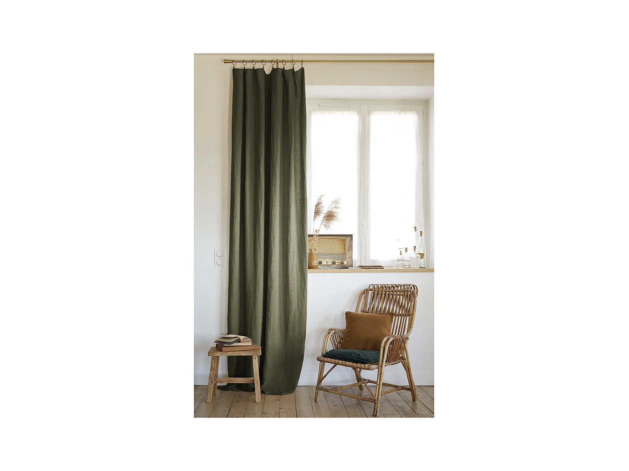 Rideau ajustable 140 x 270 cm en lin lavé vert - LUISA