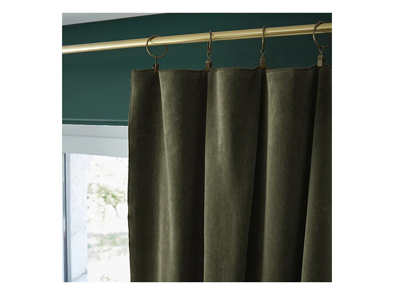 HARRIS - Rideau Ajustable 140x270cm Velours de Coton Thym + 8 Anneaux Pince