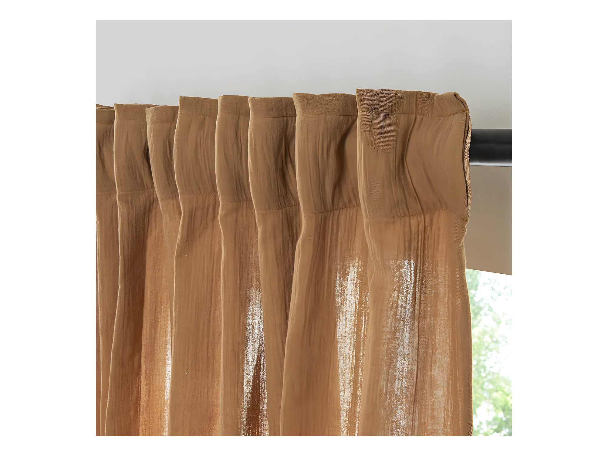 Rideau ajustable 140 x 300 cm en double gaze de coton camel - PEPA