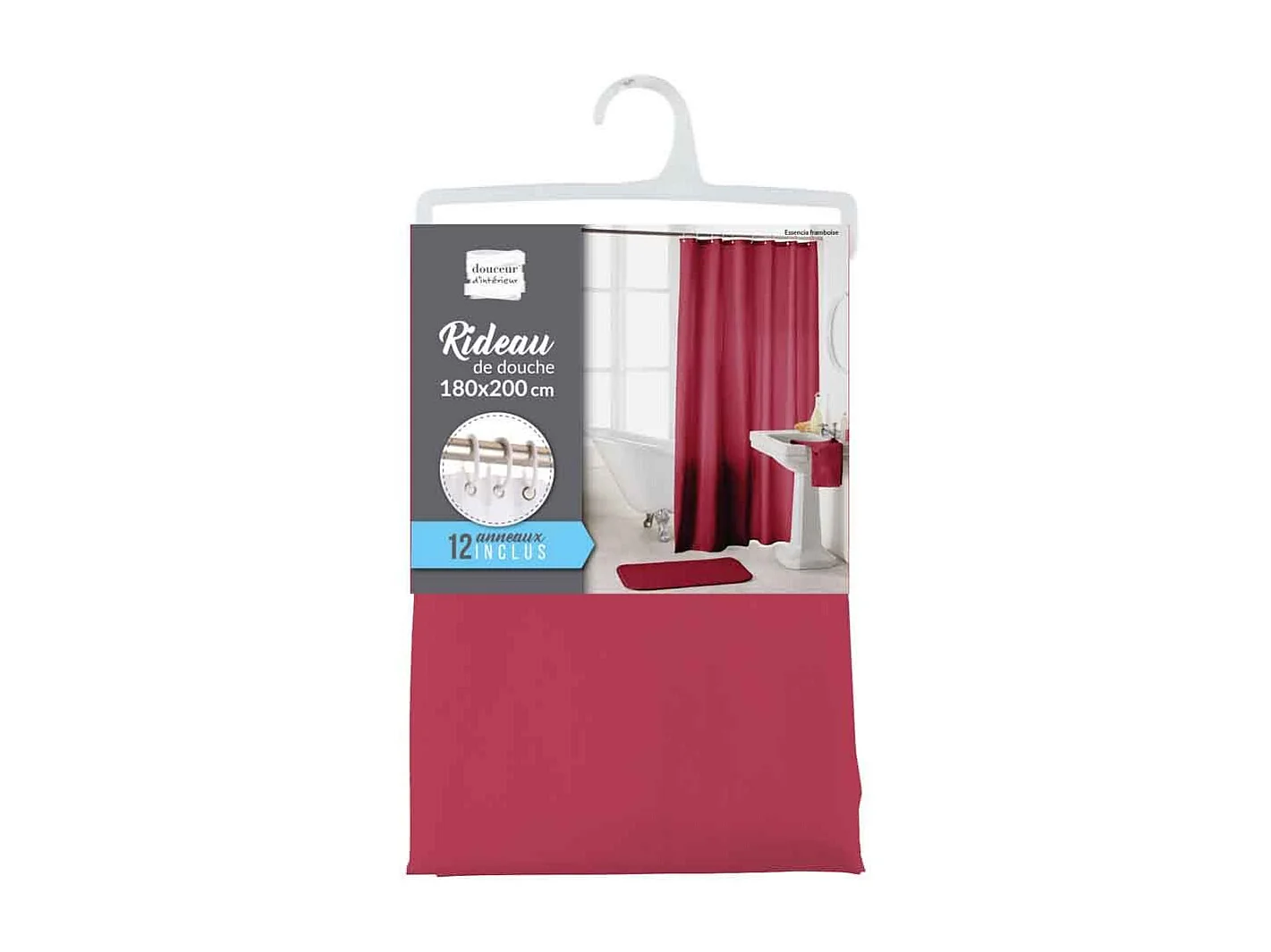 Rideau de Douche Uni "Essencia" 180x200cm Framboise
