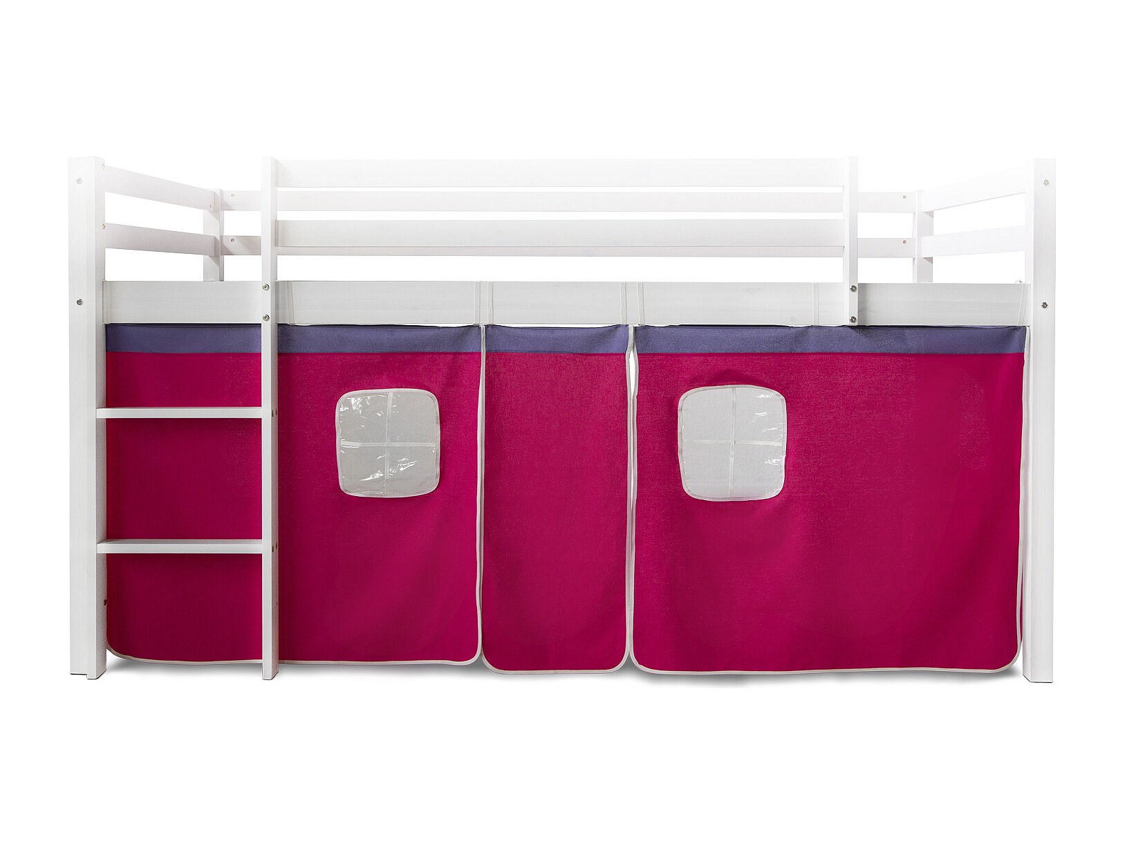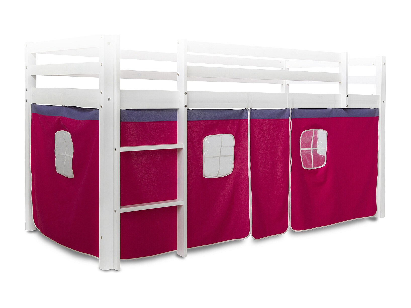Lit mezzanine enfants et rideaux rose 90x200cm bois pin massif FR87901