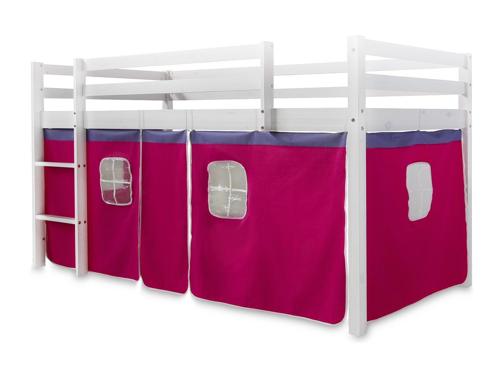 Lit mezzanine enfants et rideaux rose 90x200cm bois pin massif FR16278