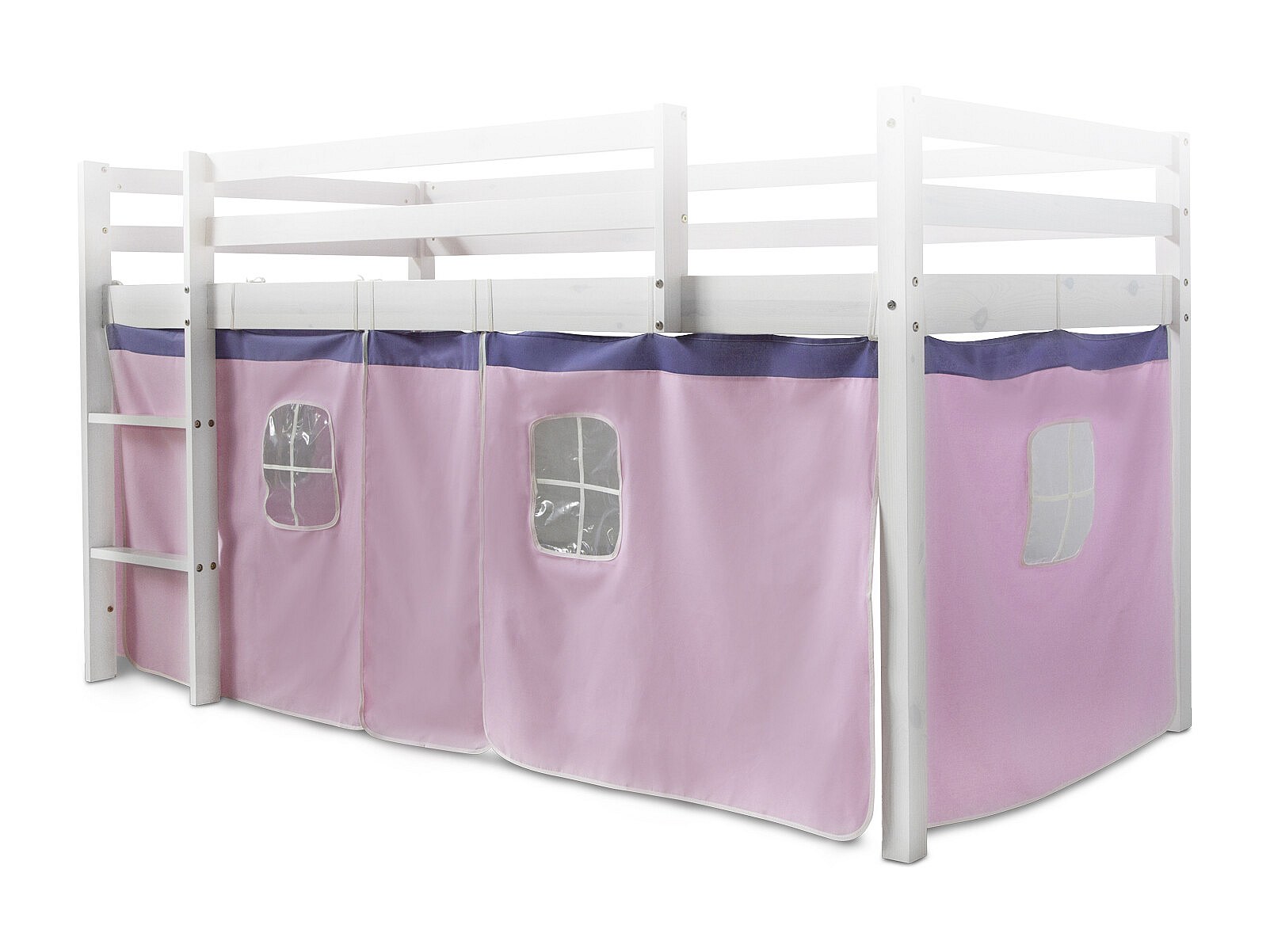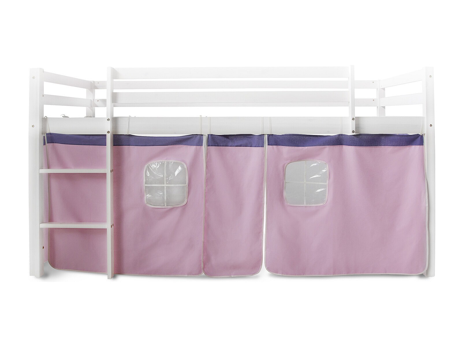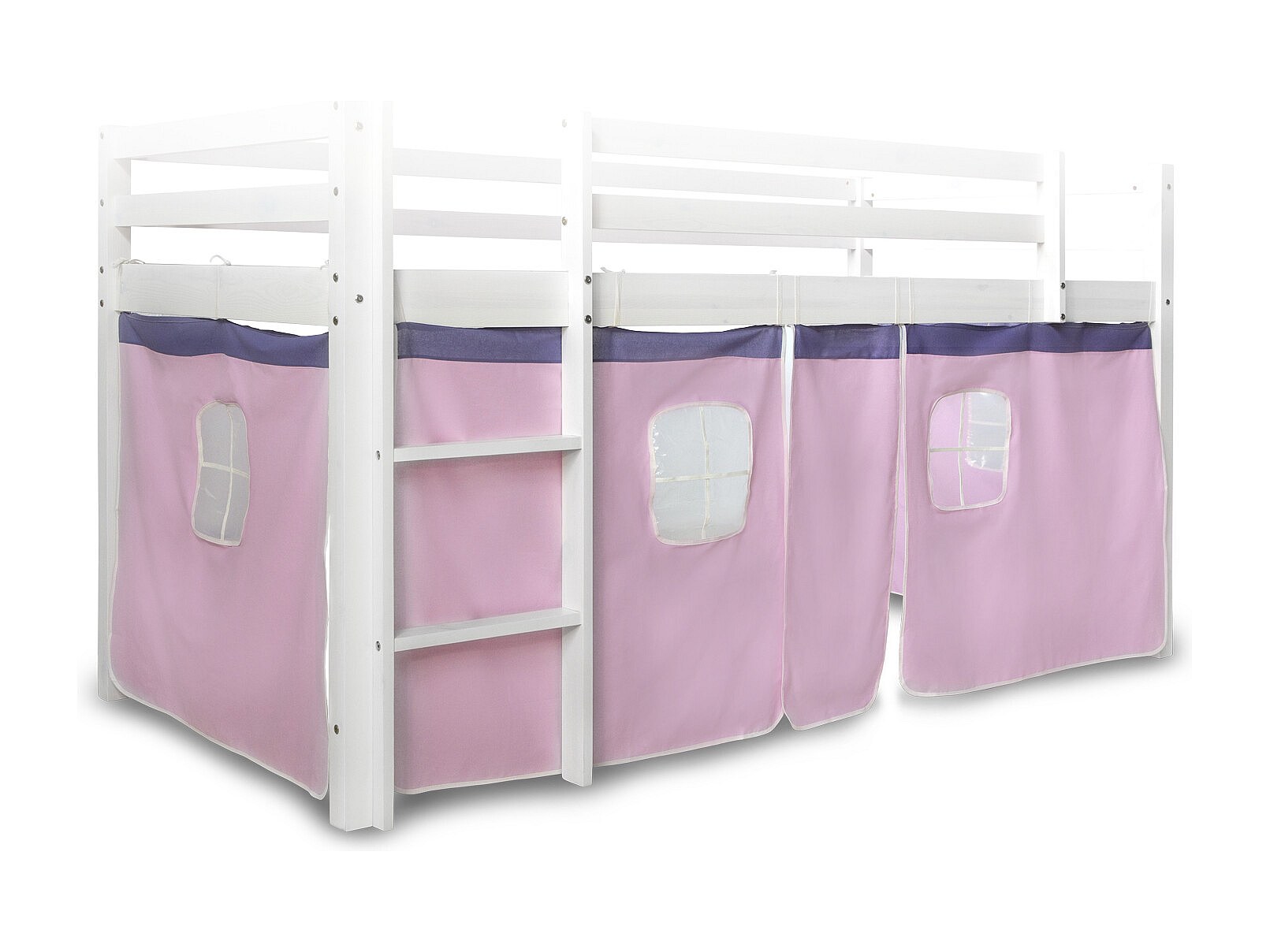 Lit mezzanine enfants et rideaux rose 90x200cm bois pin massif FR87901
