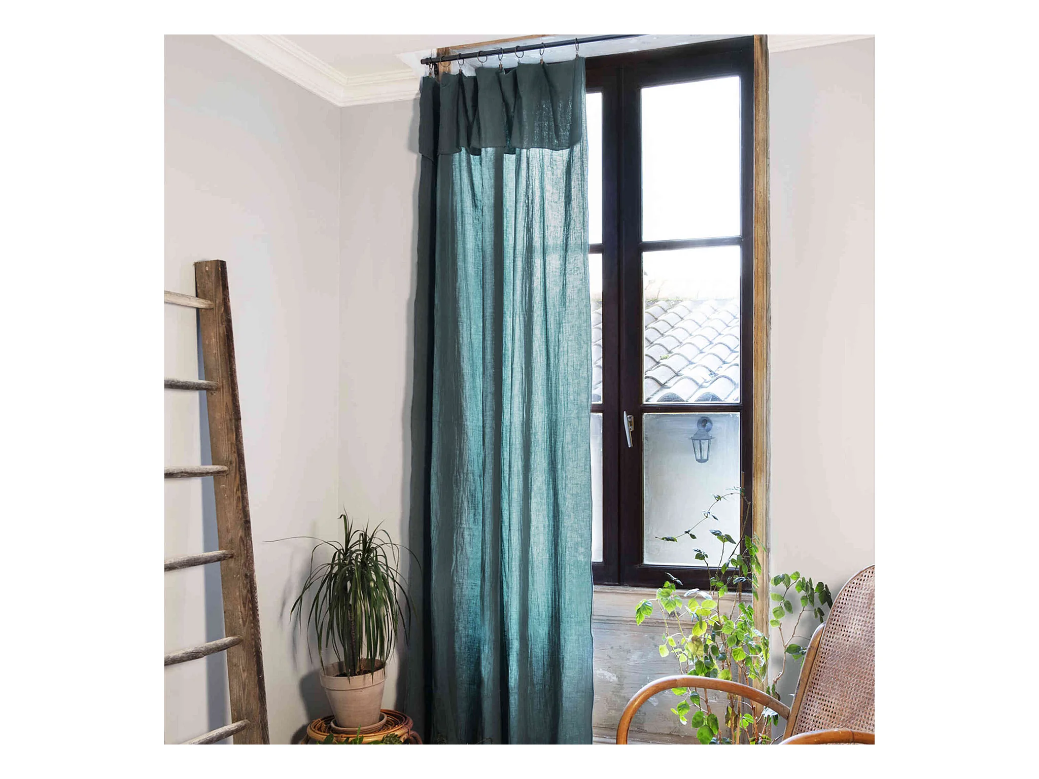 Rideau gaze de coton ajustable 140x300 cm bleu canard