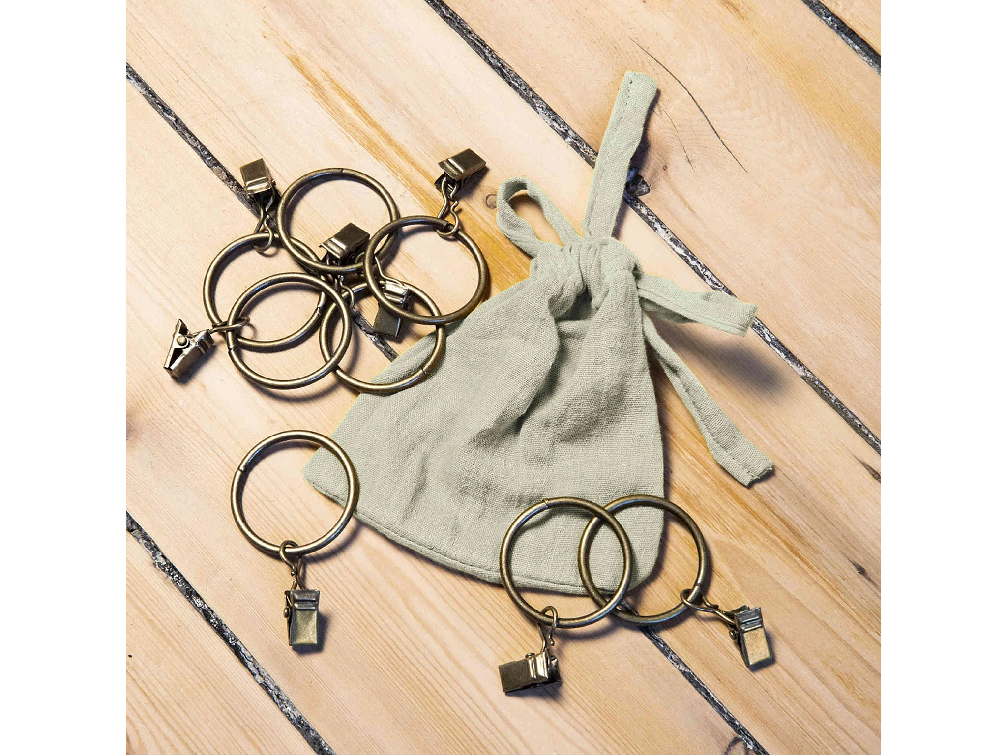 OUREA - Rideau Ajustable 140x300 cm Gaze de Coton Romarin + 8 Anneaux Pince