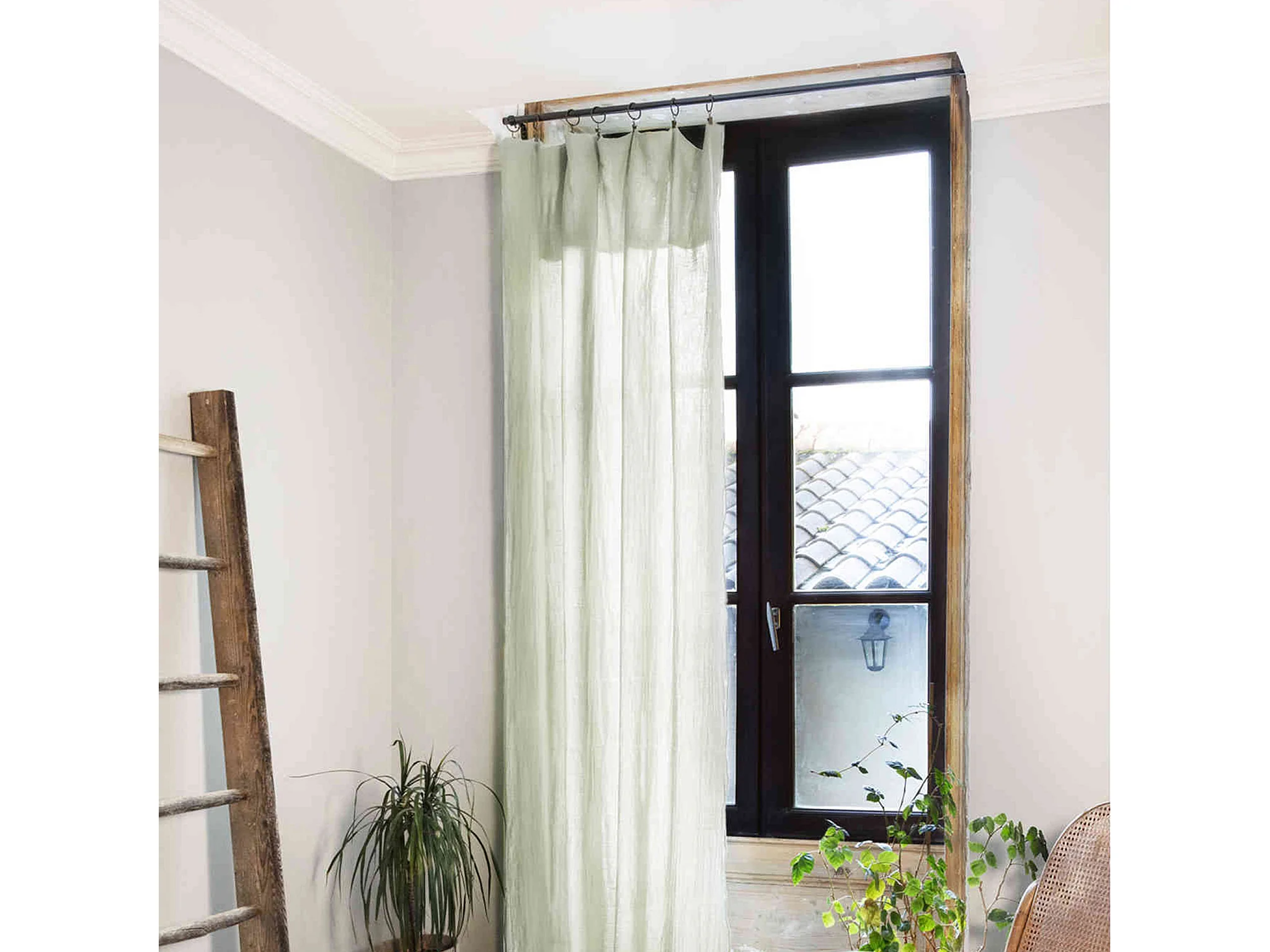 Rideau ajustable 140 x 270 cm en lin lavé vert - LUISA