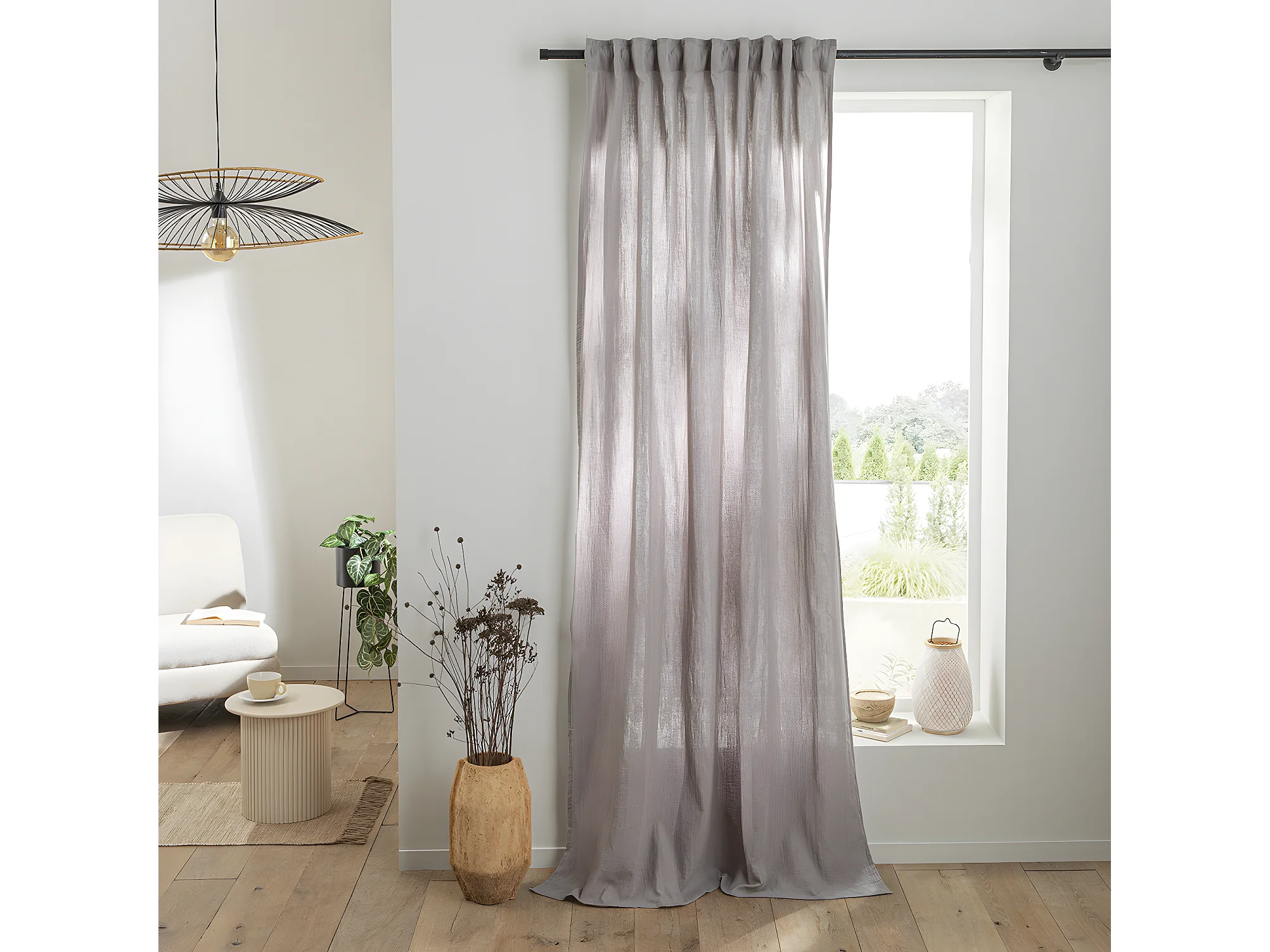 Rideau uni en gaze de coton pattes cachées à l'unité 140x300cm gris