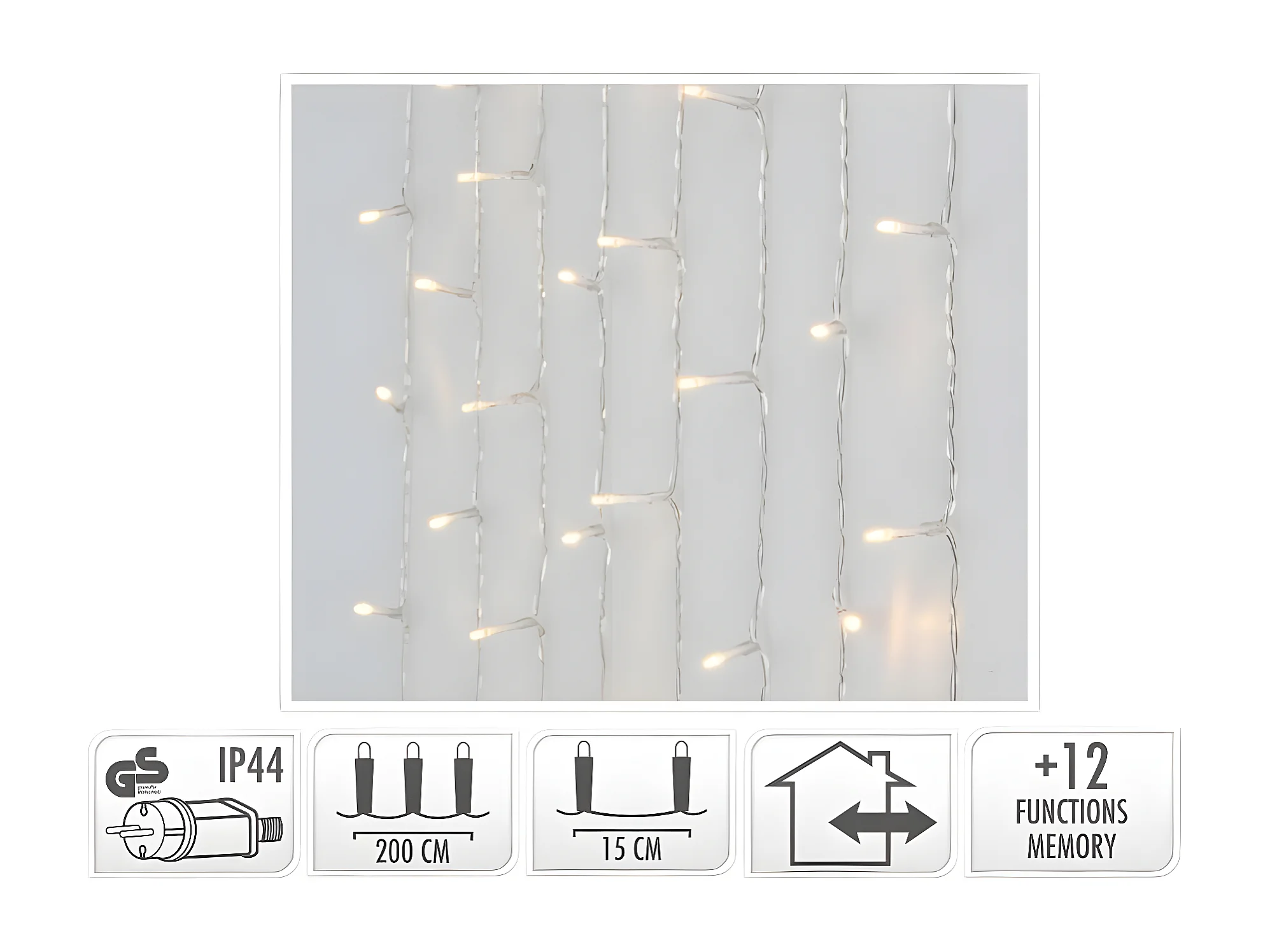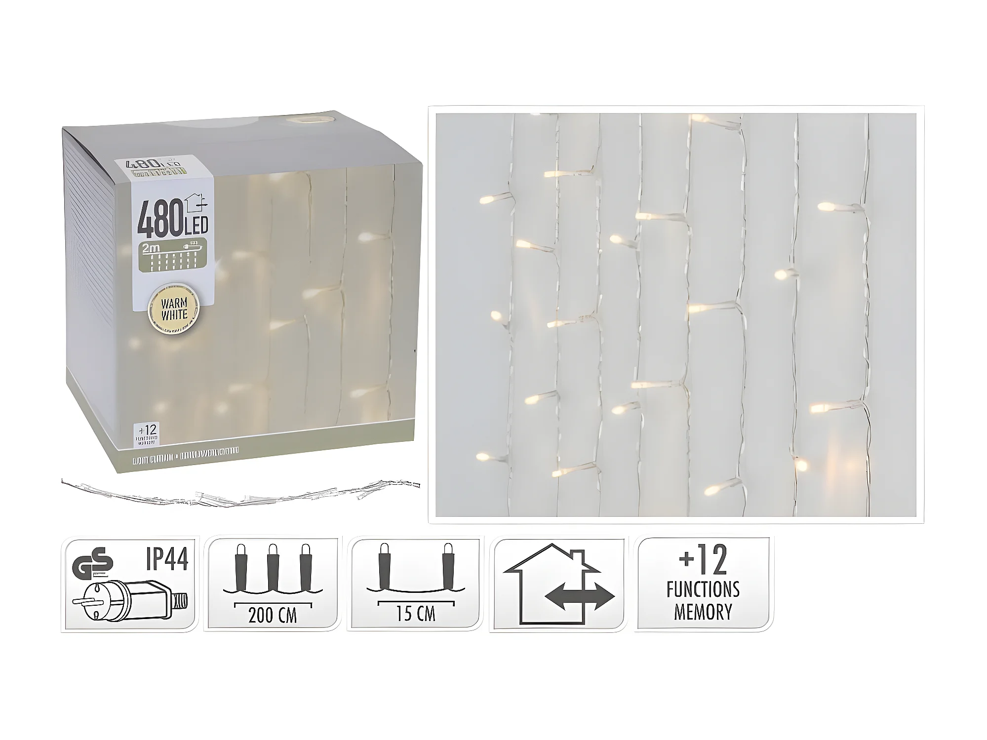 Rideau Guirlande LED Transparent Extérieur 480LEDS 2m Blanc Chaud 2700K