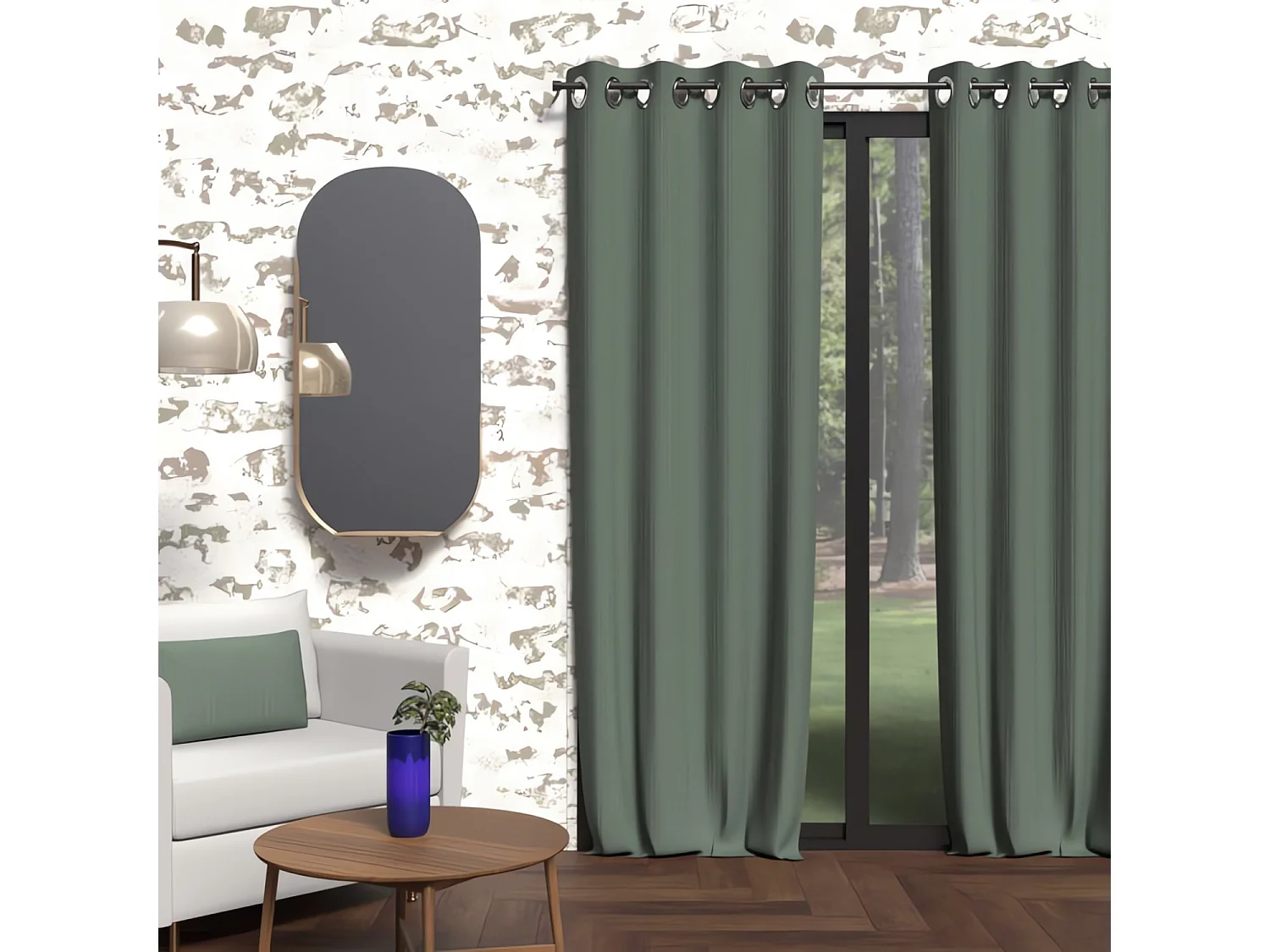 Rideau Occultant à Œillets "Reglisse" 140x180cm Vert Argile