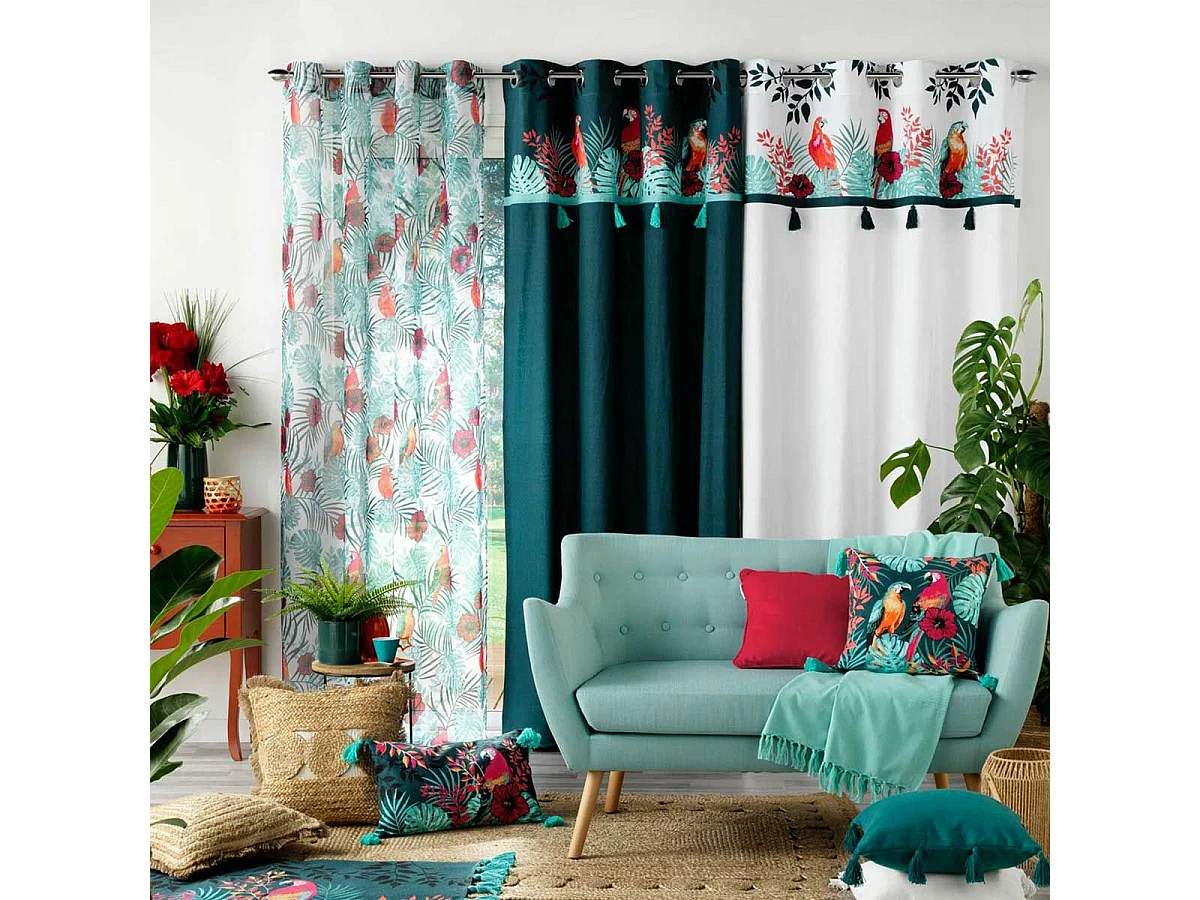 Rideau Voilage à Œillets "Caracas Line" 140x240cm Bleu