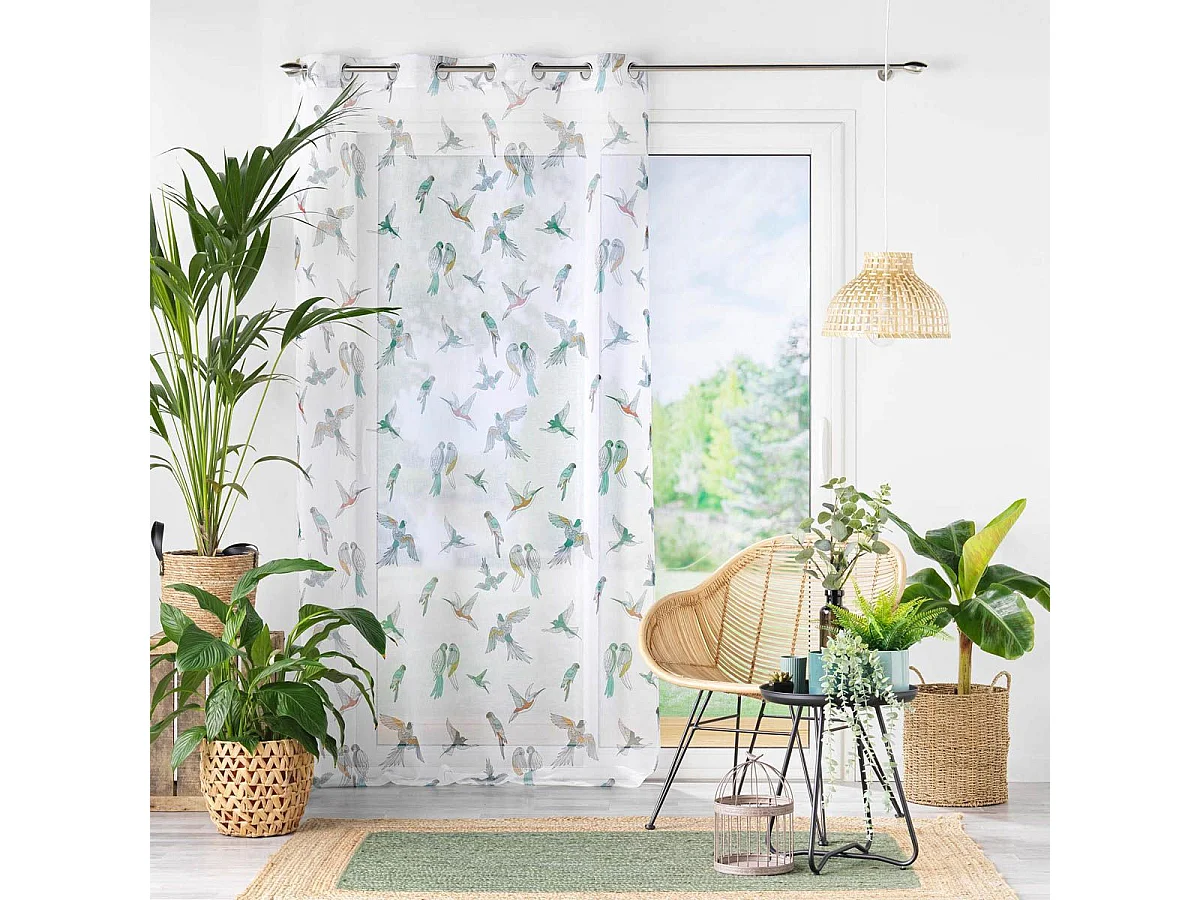 Rideau Voilage à Œillets Imprimé "Envolia" 140x240cm Blanc