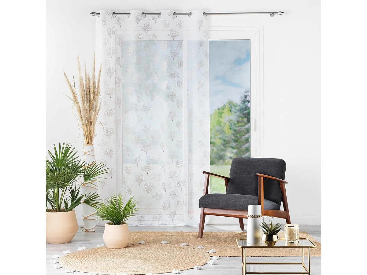 Rideau Voilage à Œillets Imprimé Métallisé "Arcadie" 140x240cm Blanc