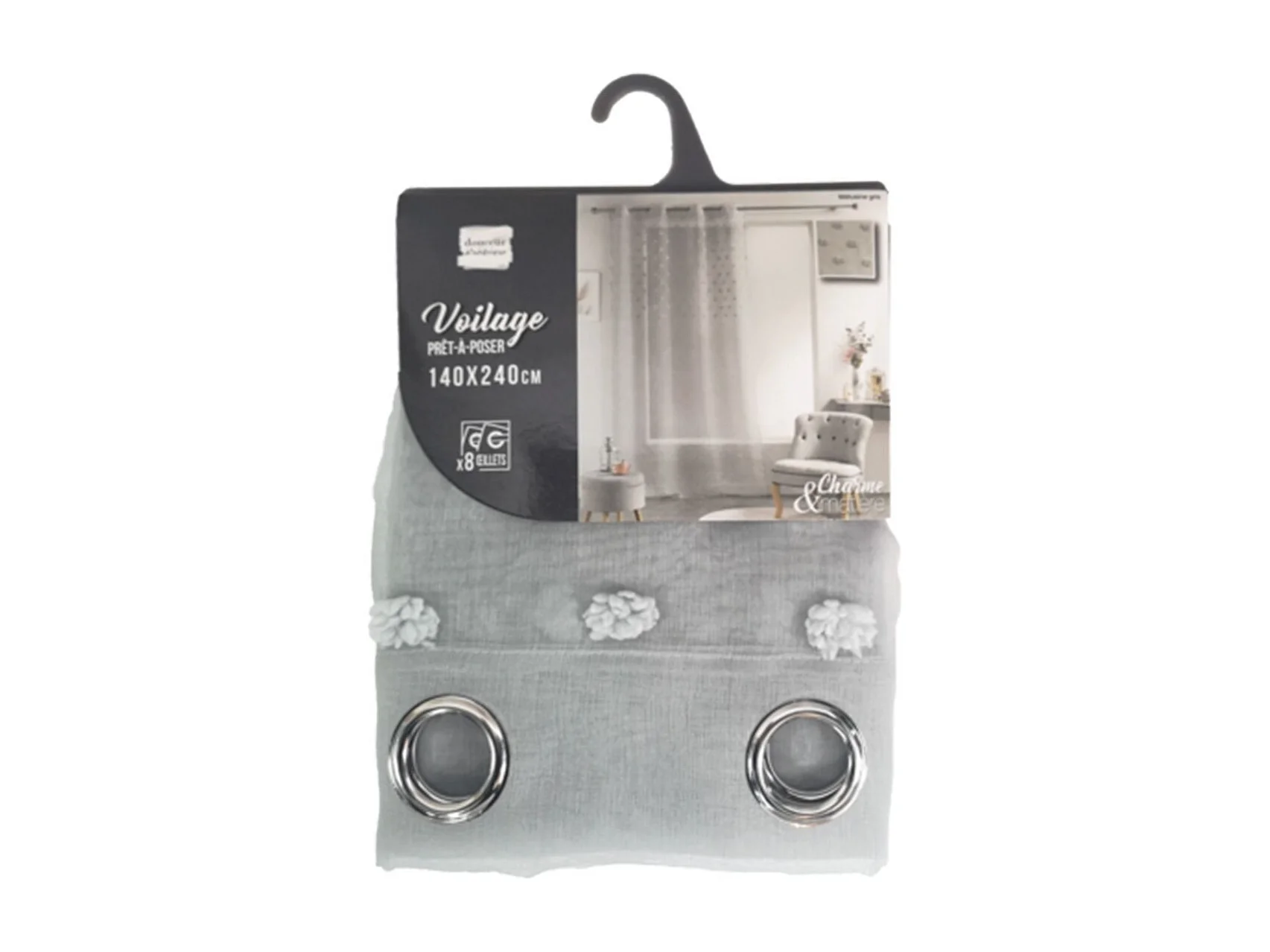 Rideau Voilage à Œillets "Mélusine" 140x240cm Gris