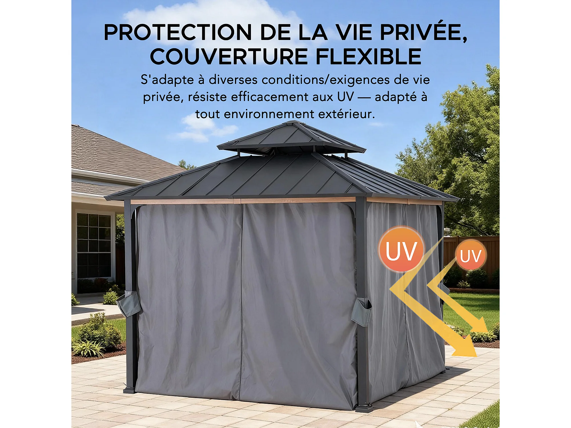 Rideaux de rechange SUNJOY pour tonnelle en acier de 300 cm x 300 cm
