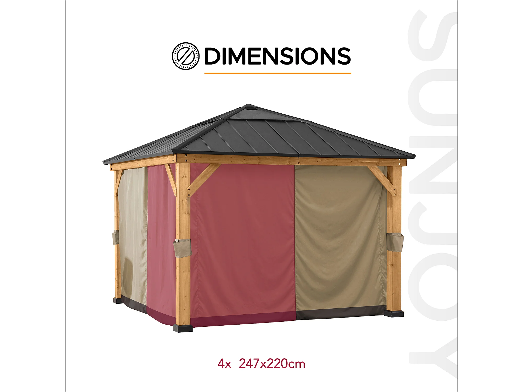 Rideaux de remplacement SUNJOY pour tonnelles à ossature bois de 273 cm x 273 cm
