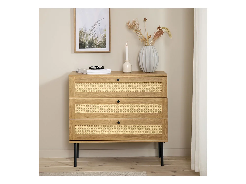 Rinto - Commode 3 tiroirs en bois et métal L80cm - Bois clair