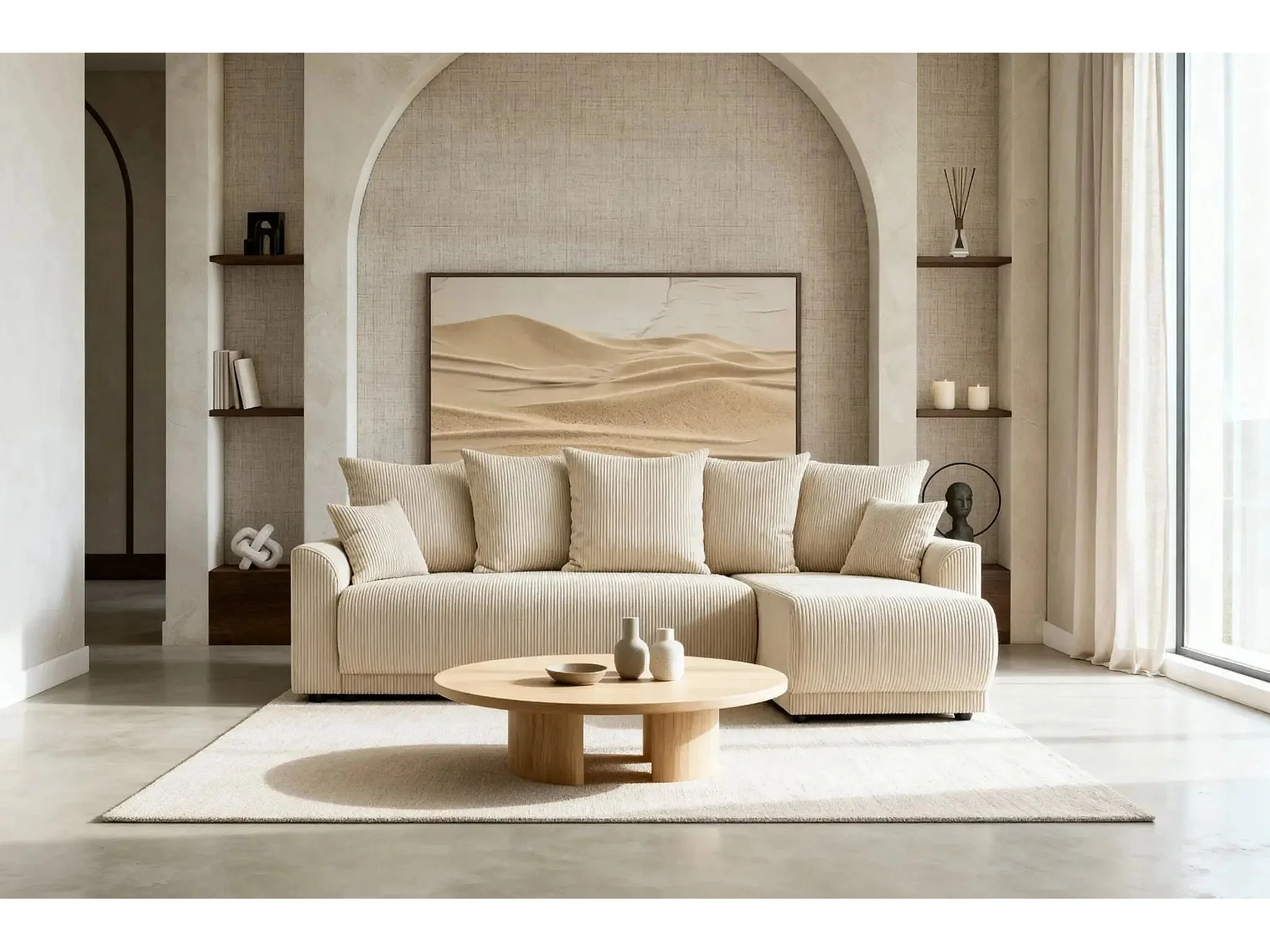 RIO - Canapé d'angle 3 places - Beige