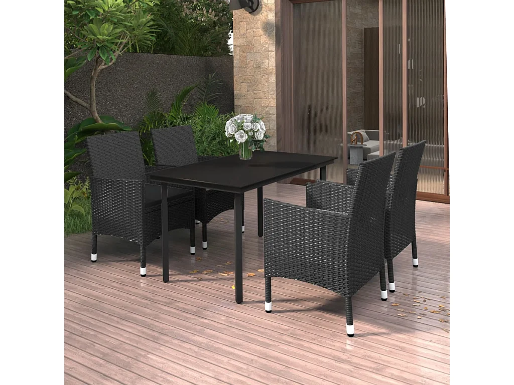 Rion Ensemble à manger de jardin coussins 5 pcs Résine tressée Verre