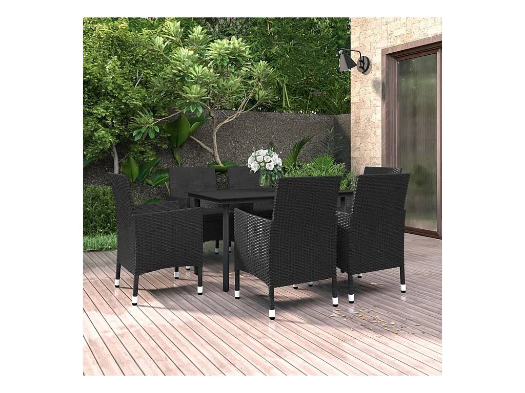 Rion Ensemble à manger de jardin coussins 7 pcs Résine tressée Verre