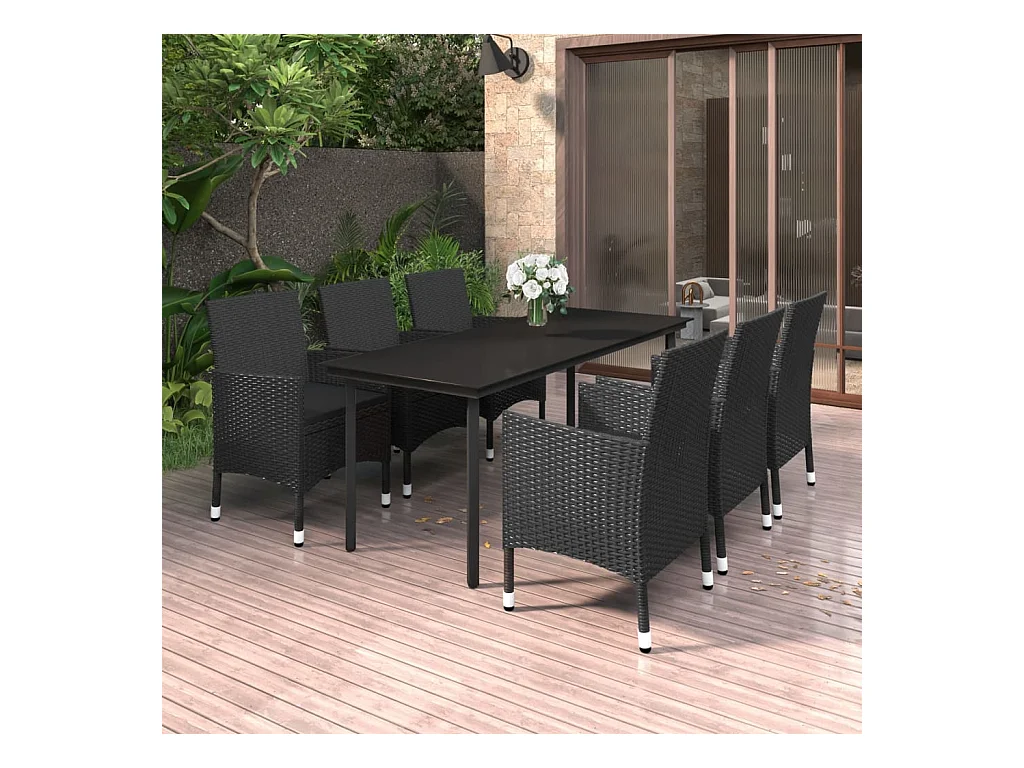 Rion Ensemble à manger de jardin coussins 7 pcs Résine tressée Verre