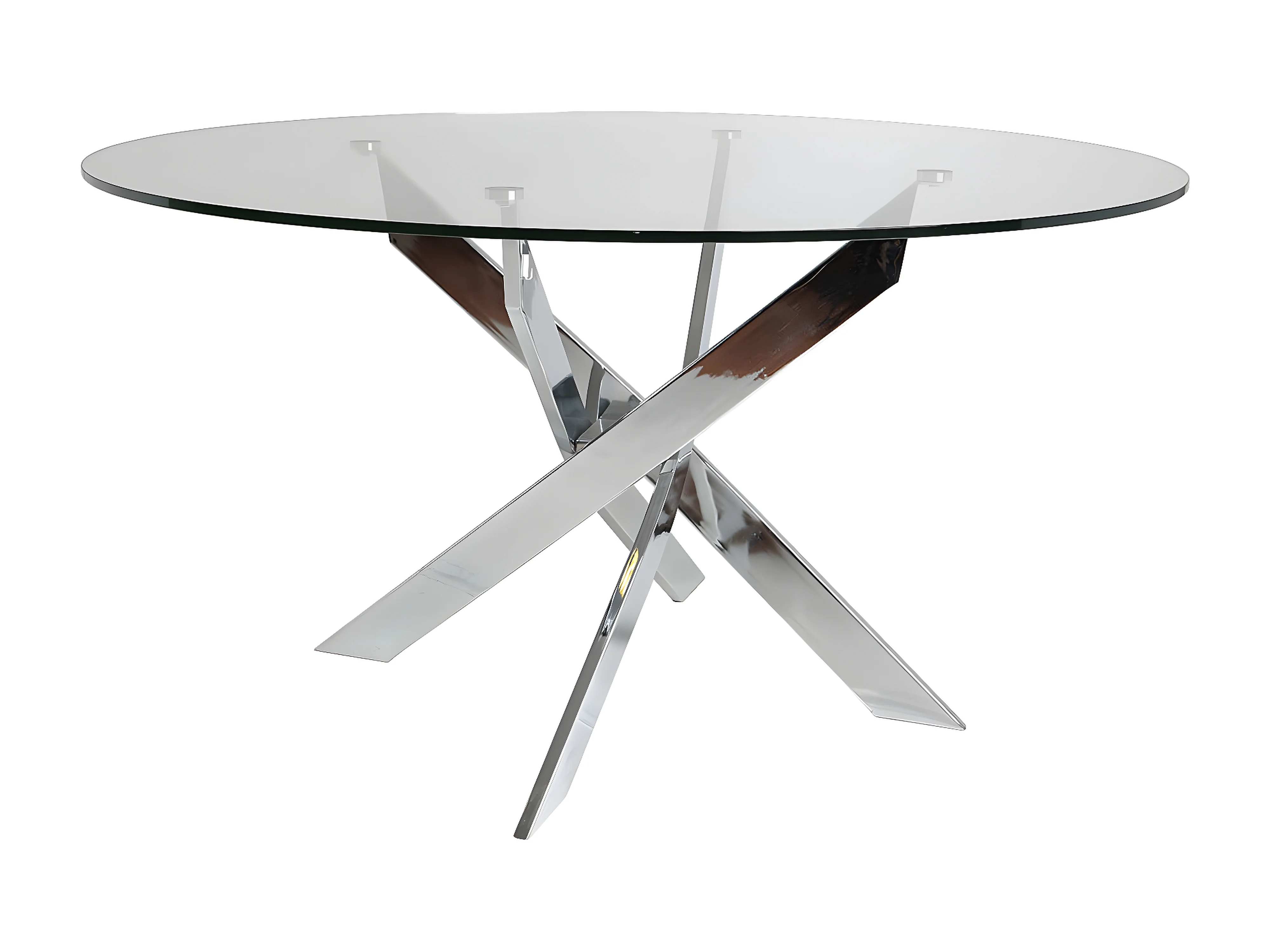 RITHA - Table Ronde 140cm Pieds Chromés et Plateau en Verre