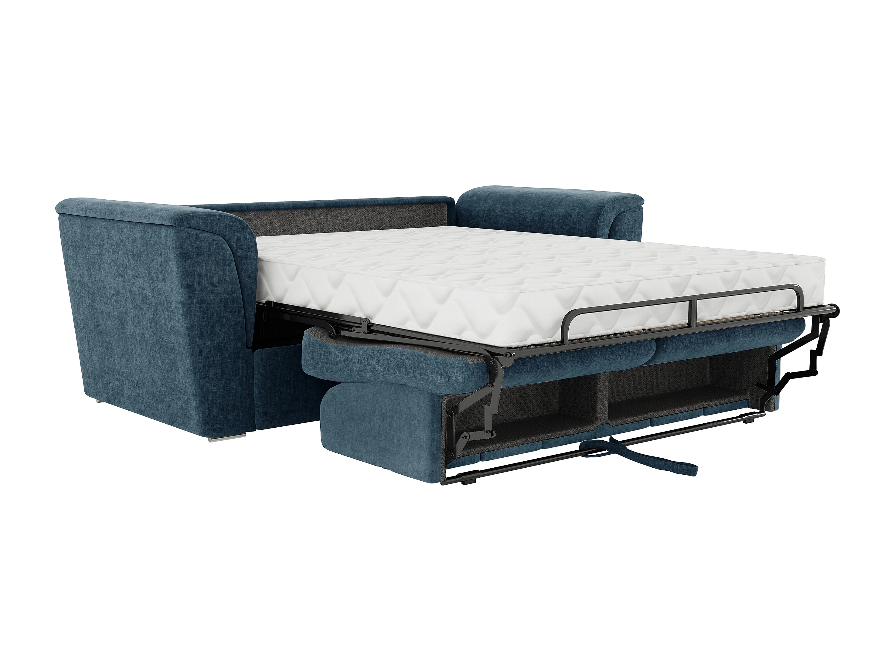 Canapé 4 places convertible express en tissu texturé bleu - Couchage à lattes larges 160 cm - Matelas 18 cm - RIZORA