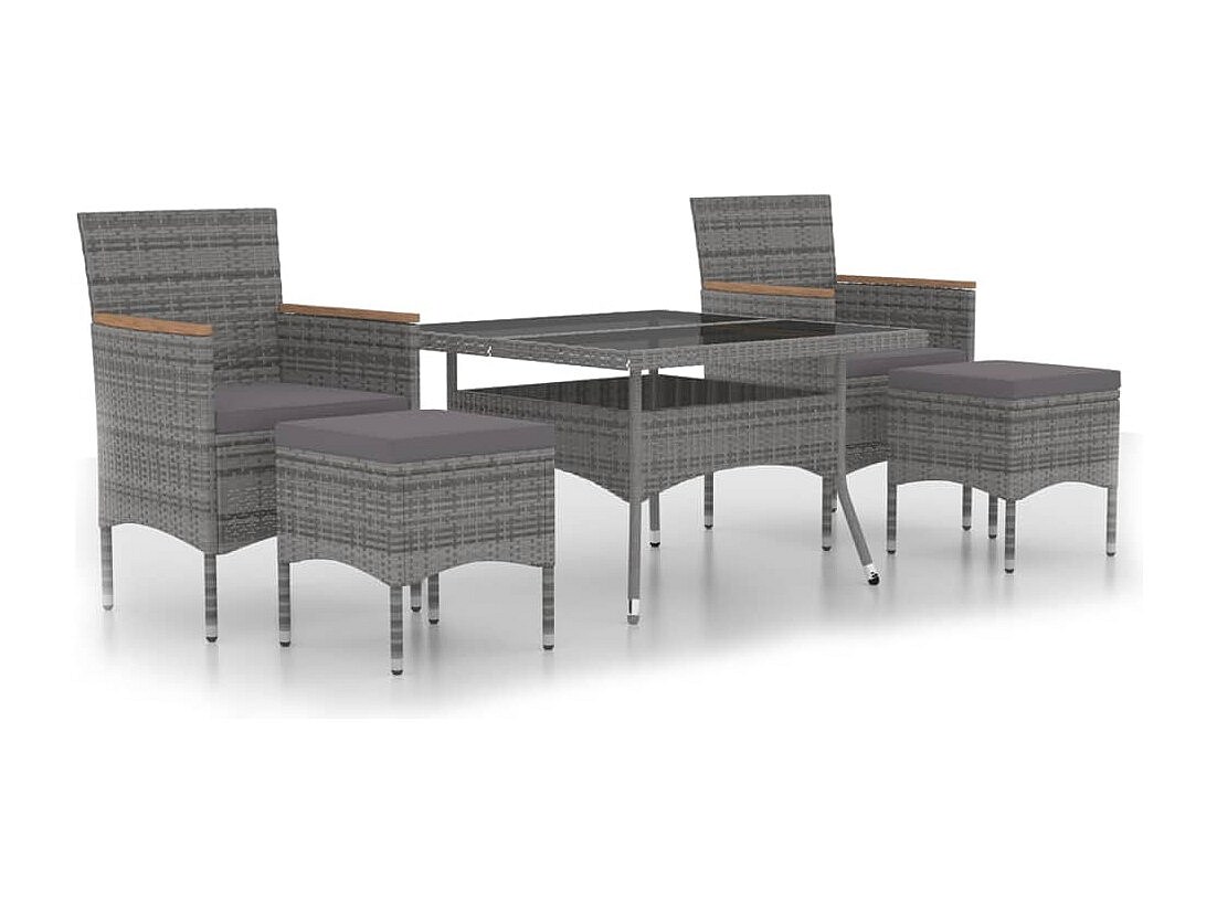 Roan Ensemble à Manger jardin 5 pcs résine tressée verre trempé Gris