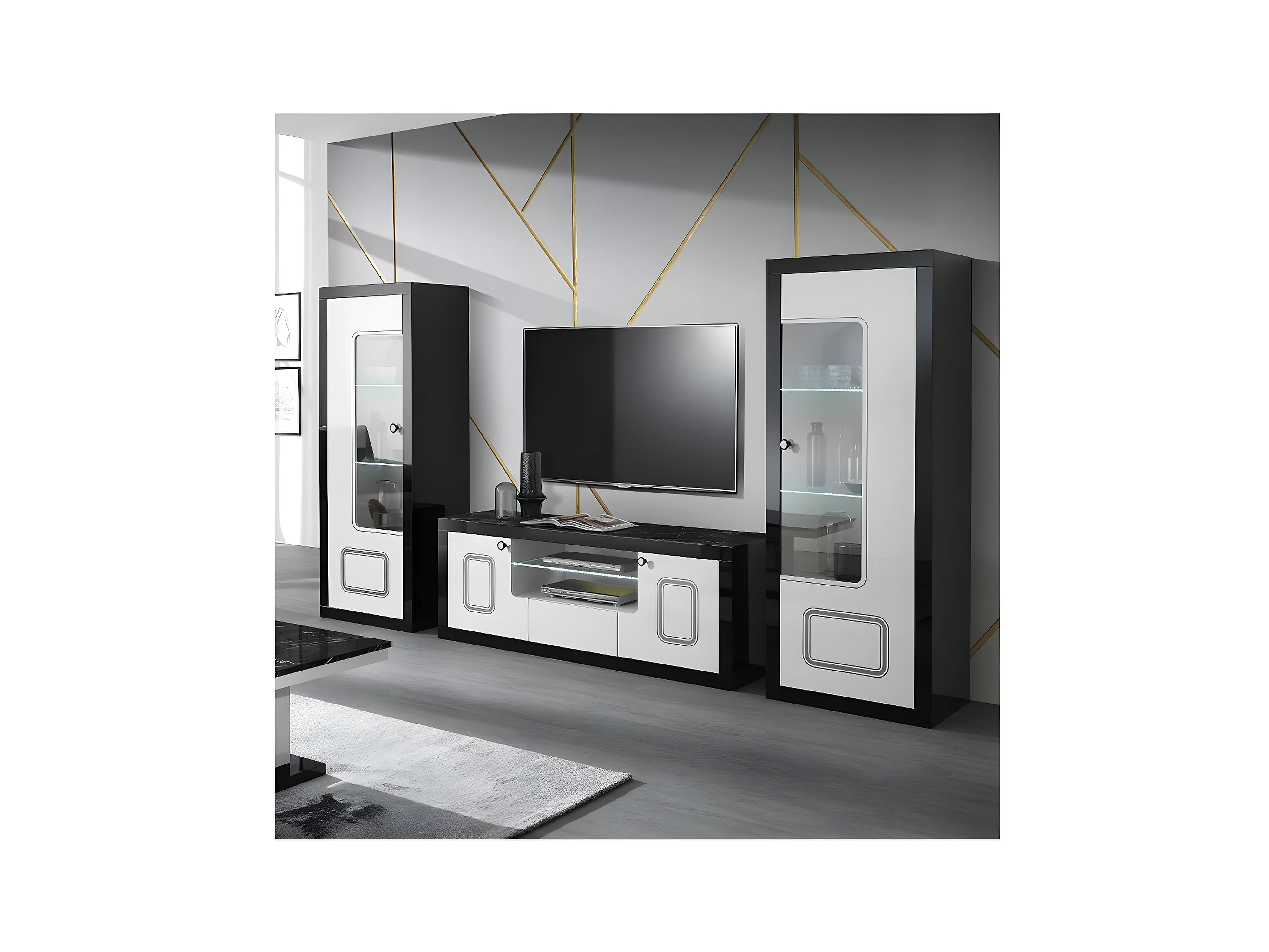 ROBBIE - Vitrine 1 Porte Droite Laqué Noir et Blanc