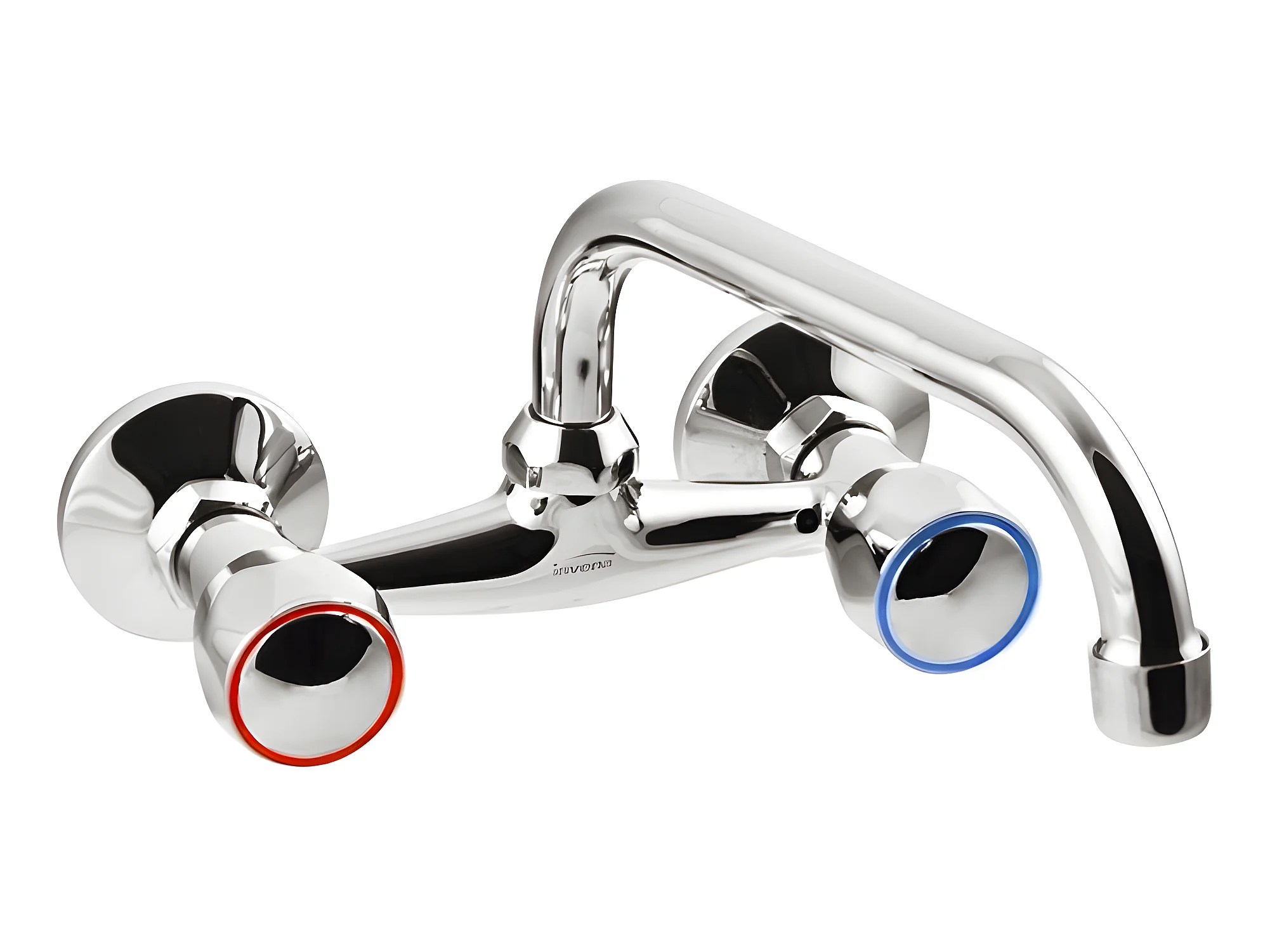 Robinet Cuisine Mitigeur Chrome Mural Bec Supérieur Manettes Croisillons