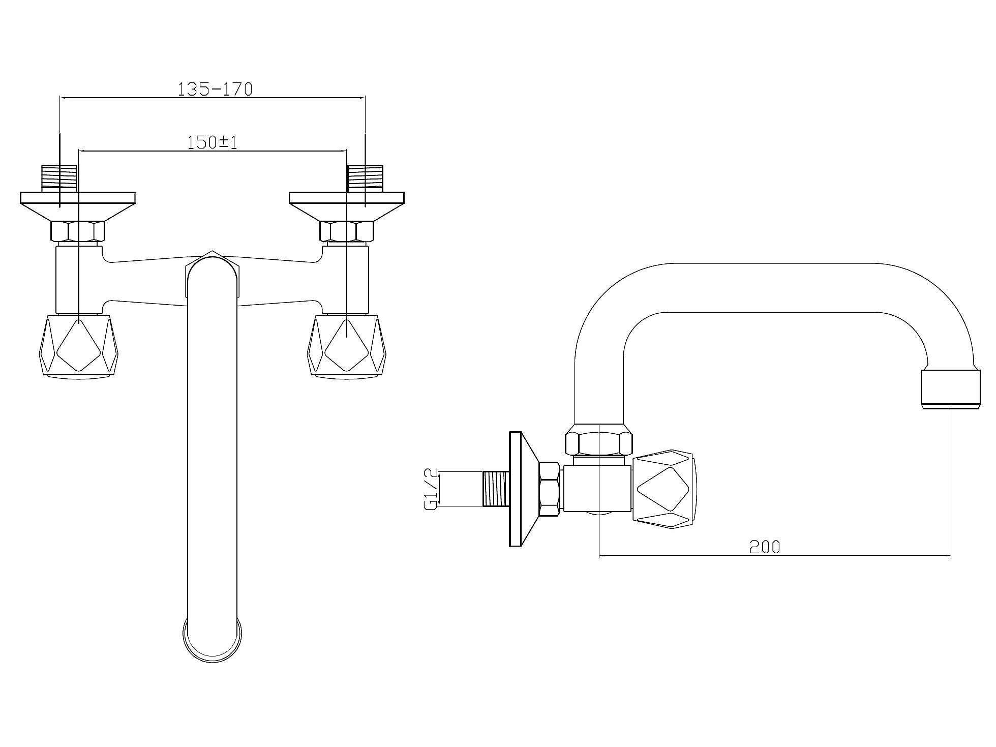Robinet Cuisine Mitigeur Chrome Mural Manettes Croisillons Bec Supérieur