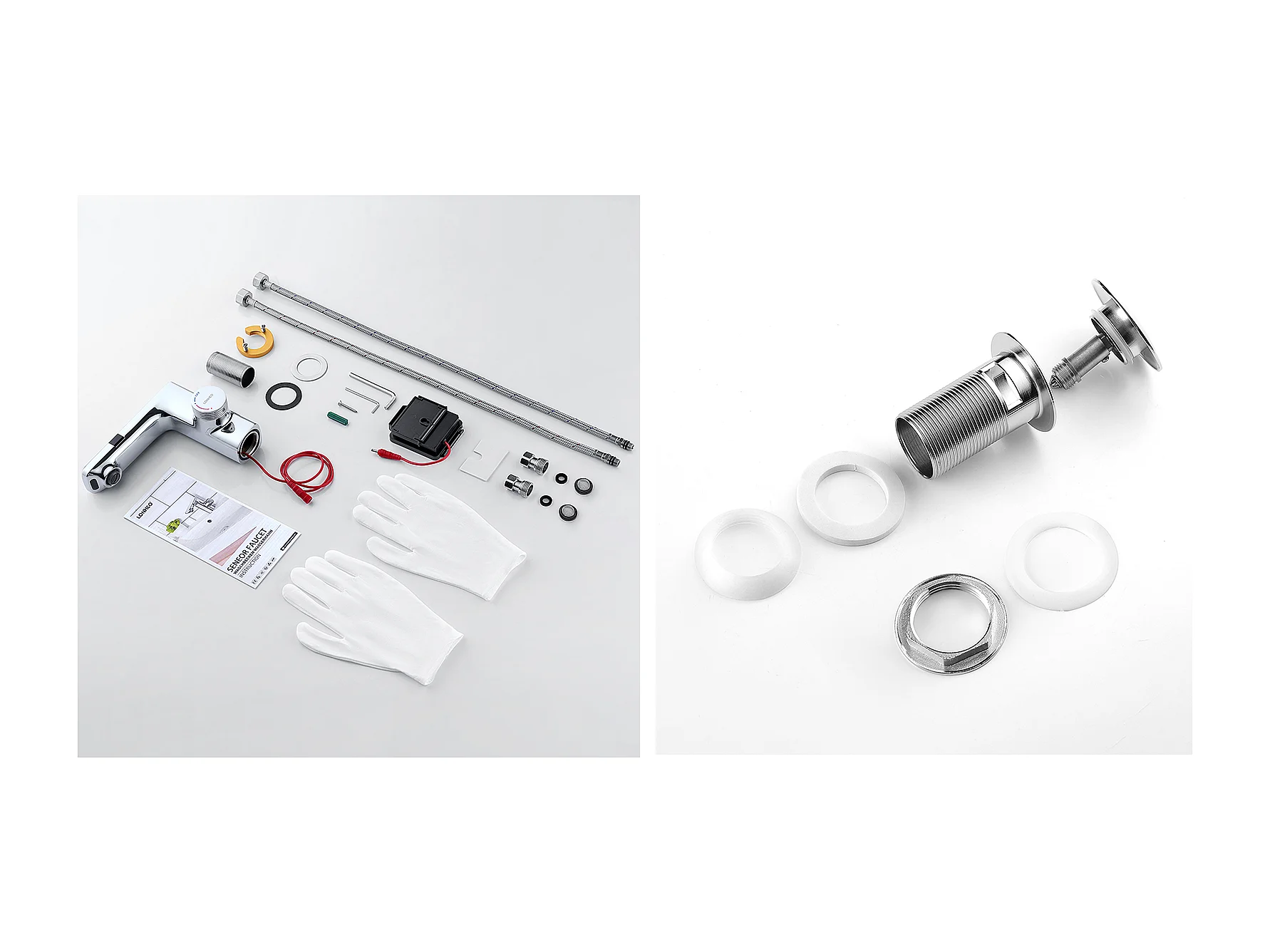 Robinet Automatique Infrarouge,Barboteur démotable,à Double Induction,Chromé+Bonde de Lavabo Bonde Pop-up avec Trop-plein Automatique Universelle