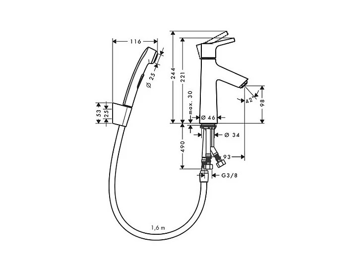 Robinet bidet avec douchette HANSGROHE Talis S + bonde Push-Open Chromé
