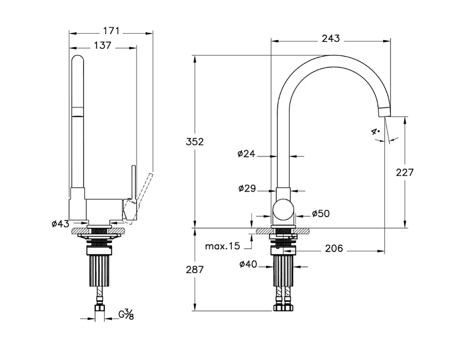 Robinet cuisine rabattable VITRA Masterline chromé