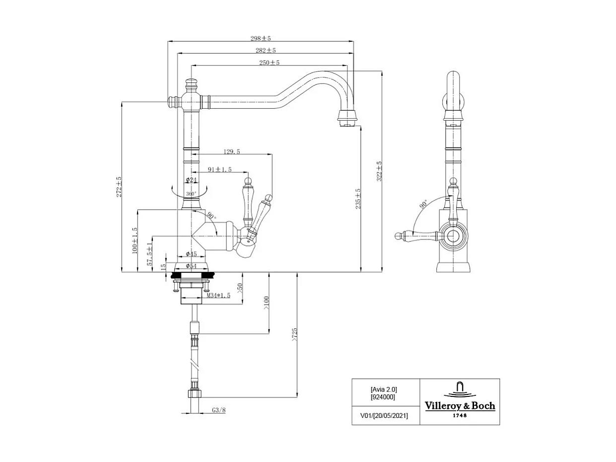 Robinet cuisine VILLEROY ET BOCH Avia 2.0 Acier massif + nettoyant