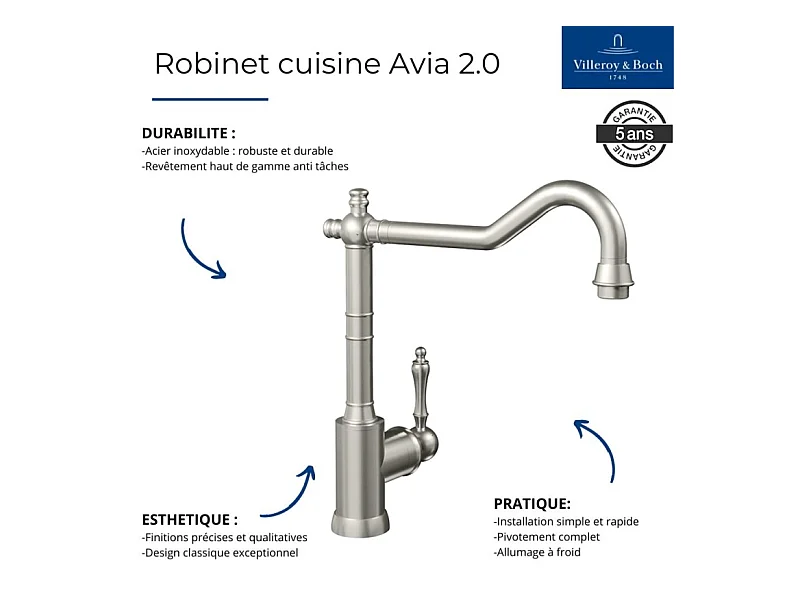 Robinet cuisine VILLEROY ET BOCH Avia 2.0 Bronze + nettoyant