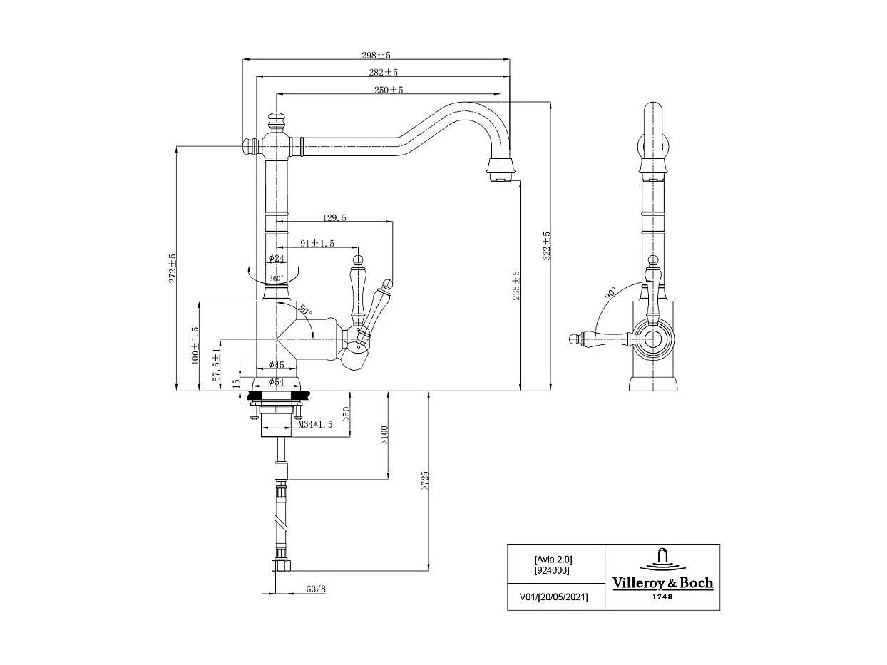 Robinet cuisine VILLEROY ET BOCH Avia 2.0 Or mat