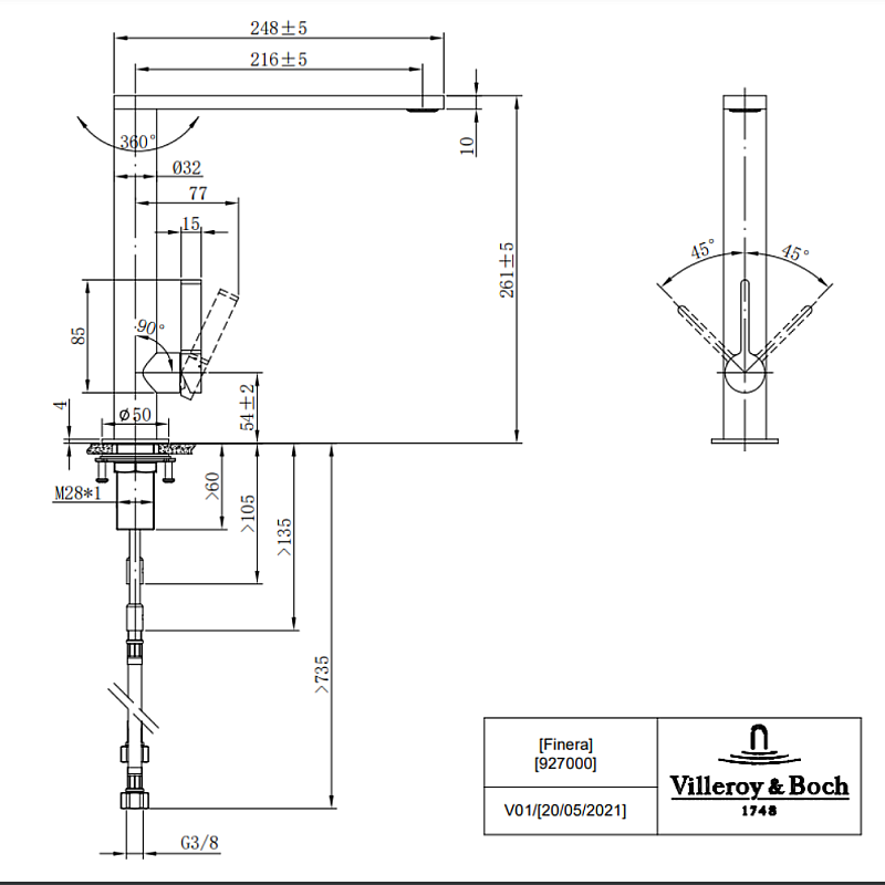 Robinet cuisine VILLEROY ET BOCH Finera acier massif
