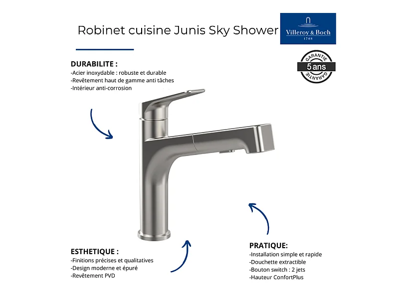 Robinet cuisine VILLEROY ET BOCH Junis Sky Shower + nettoyant
