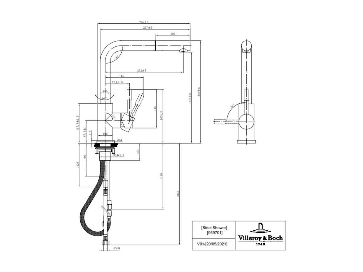 Robinet cuisine VILLEROY ET BOCH Steel Shower acier massif + nettoyant