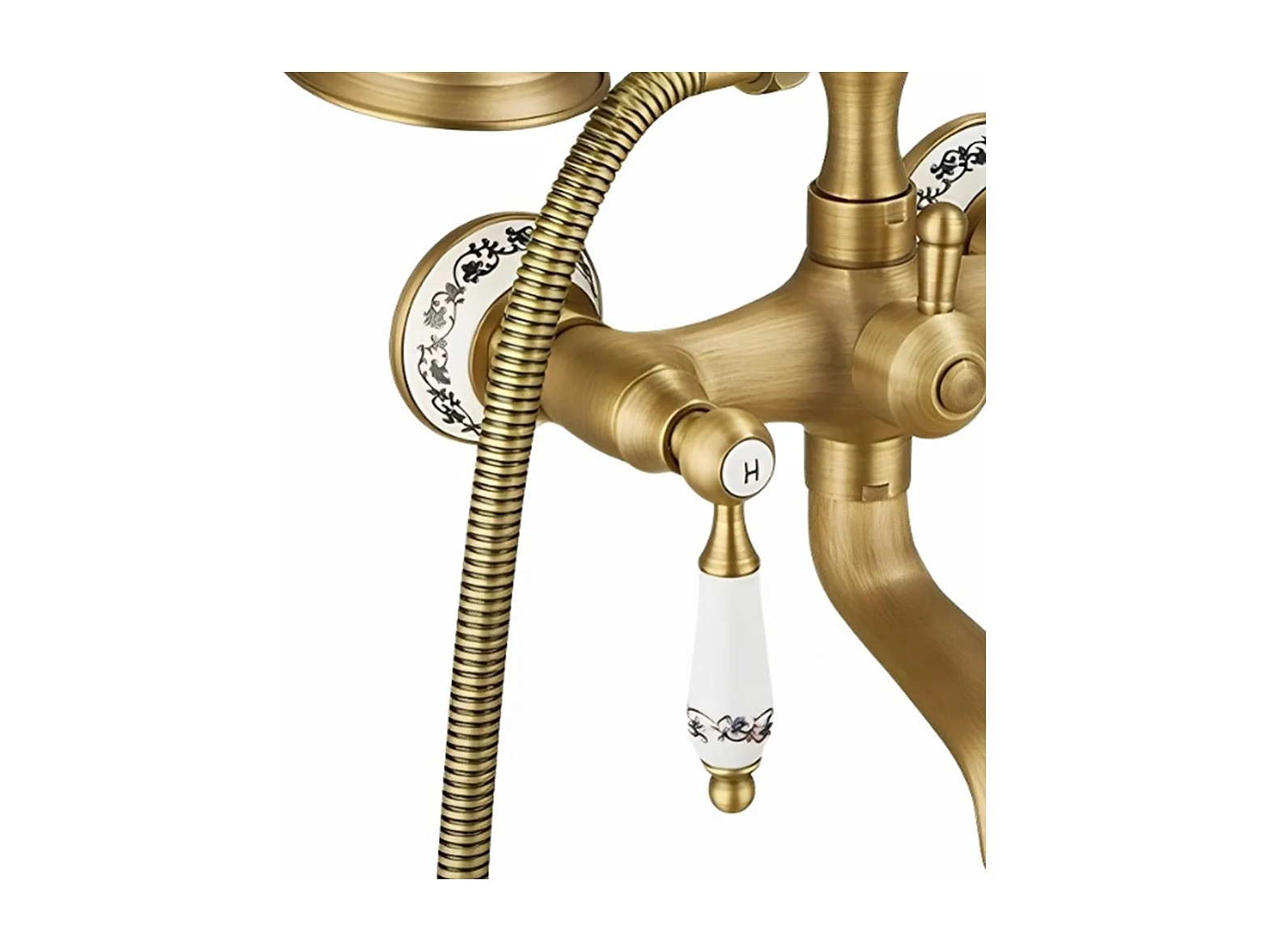 Robinet de baignoire style rétro Vintage en Laiton mélangeur avec Grosse douchette mural céramique cuivre