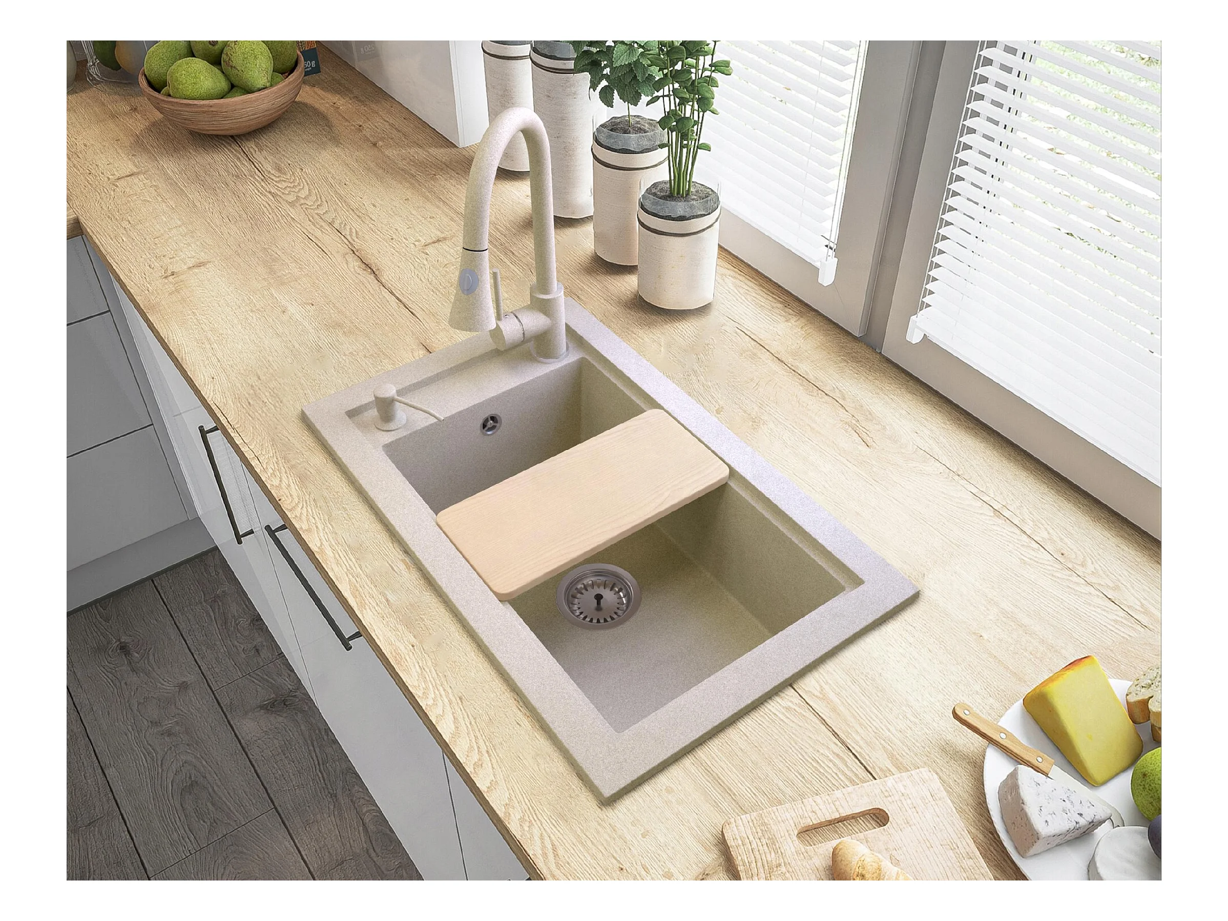 CUISINE BATTERIE ELASTIQUE Evier en granit beige